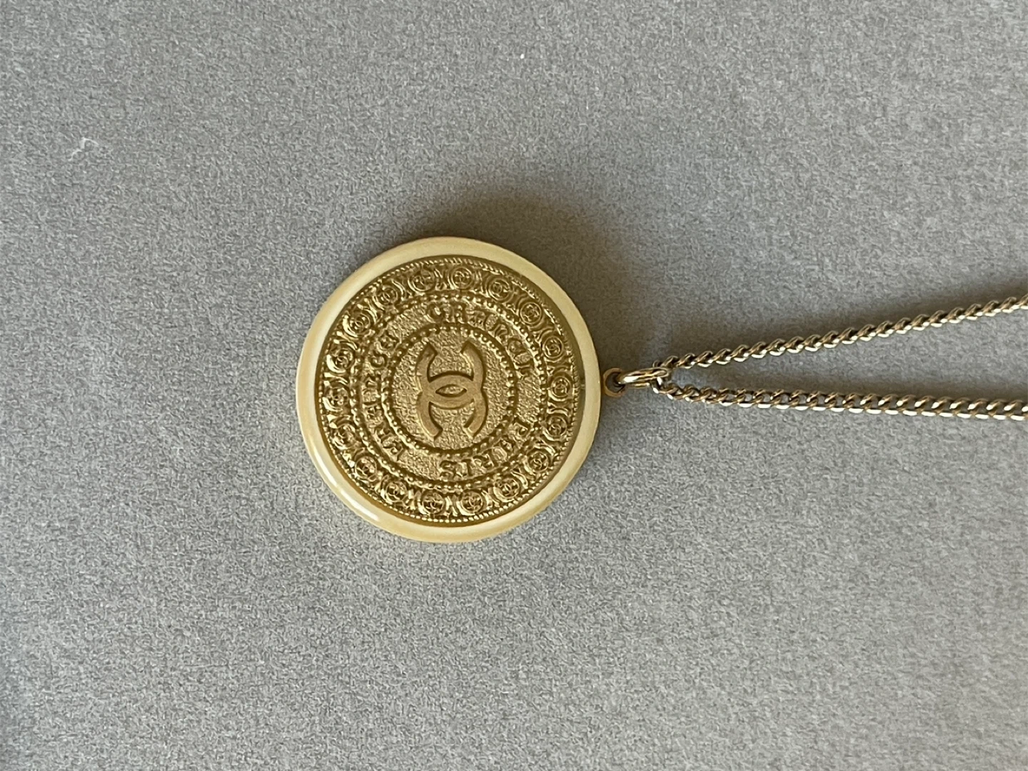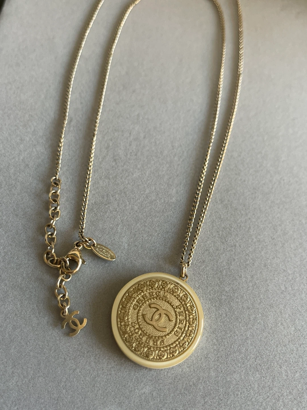 Selling a beautiful Chanel pendant necklace. The pendant is round and features the iconic Chanel logo. The chain is gold-toned. It's in great condition! Made in France Chanel fashion accessory