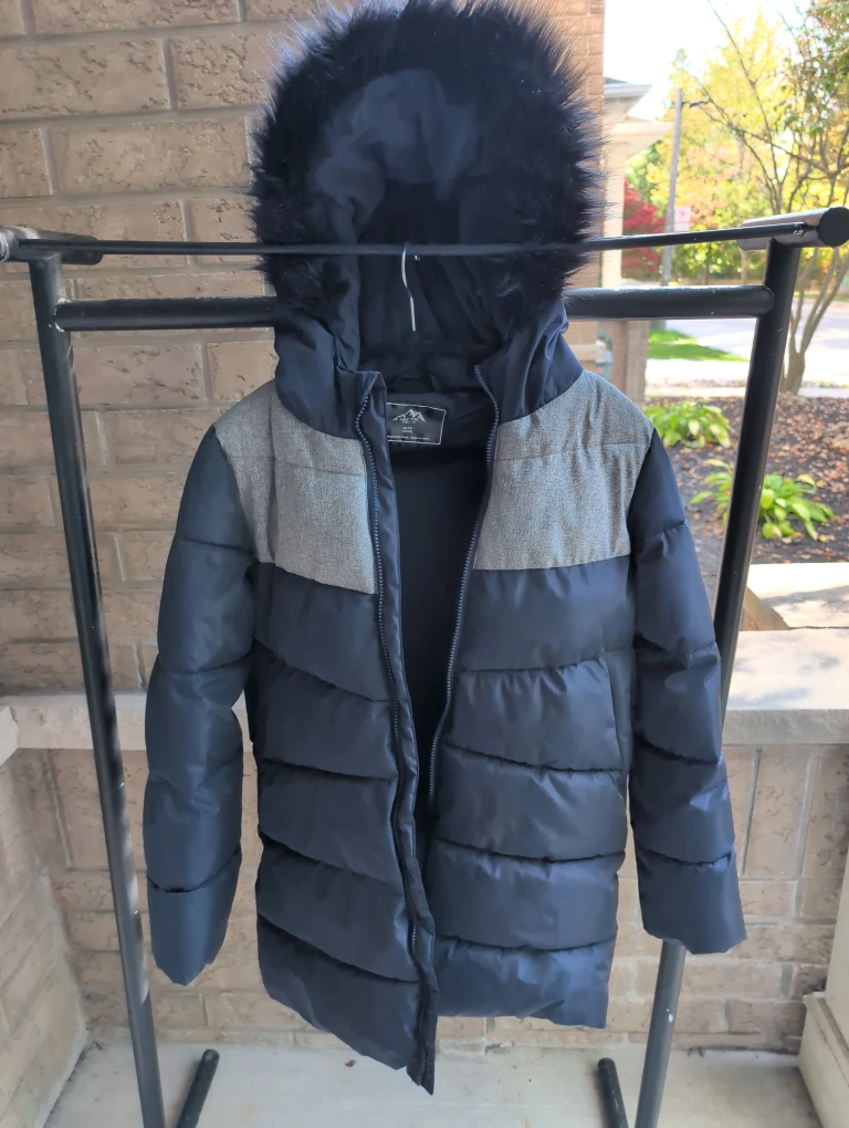 A cozy puffer jacket for kids, perfect for the colder weather! The jacket features a hood with faux fur trim and a stylish colour-blocked design. It's in great condition and ready for a new owner. Size 6.