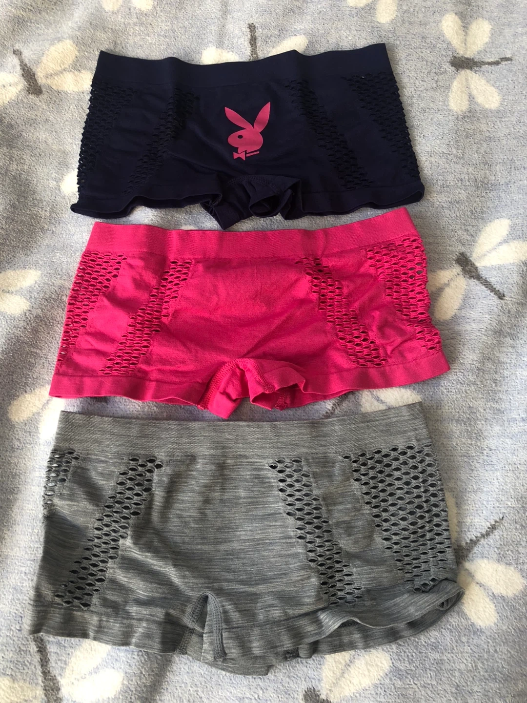 Selling a set of three pairs of Playboy underwear shorts . Includes navy blue, pink, and grey. All are in great condition and feature the iconic Playboy bunny logo! 5$ for the bundle