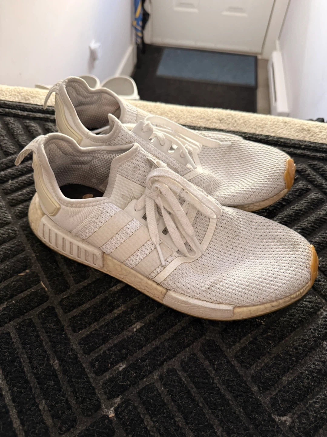 Selling a pair of Adidas NMD R1 sneakers in US size 10.5. These are a stylish and comfortable choice for everyday wear. They show some signs of wear, but still have plenty of life left!