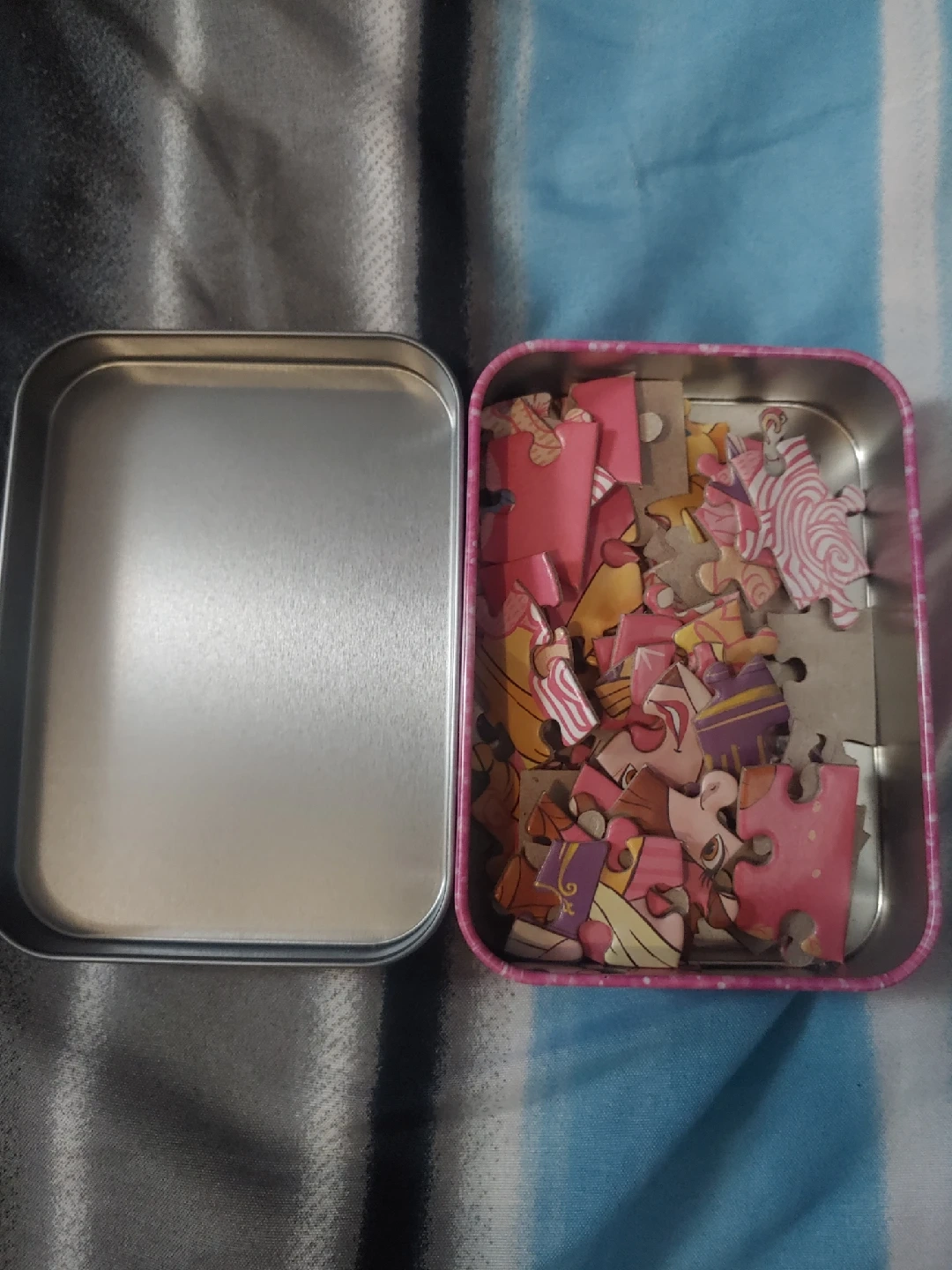This is an adorable Disney Princess puzzle featuring Belle from Beauty and the Beast! It comes with 50 pieces and is stored in a cute tin container. The puzzle measures 5 inches x 7 inches (12.7 cm x 17.7 cm). Suitable for ages 3 and up