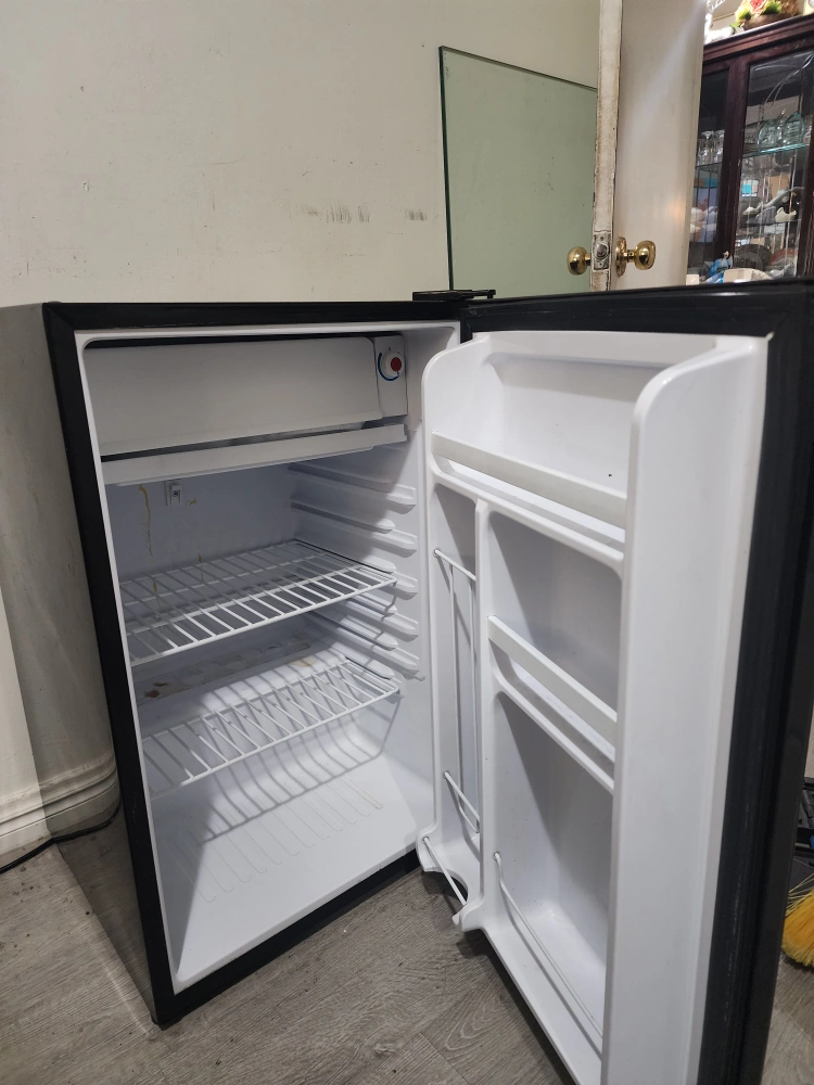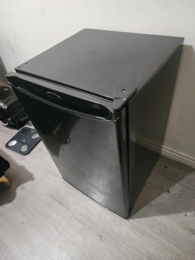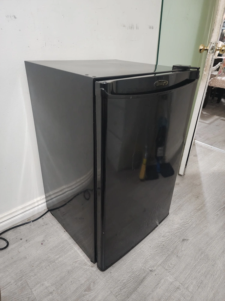 Selling a Danby Designer compact refrigerator in black. It's perfect for a small space, dorm room, or office. The fridge is in good condition and ready to keep your snacks and drinks cold!