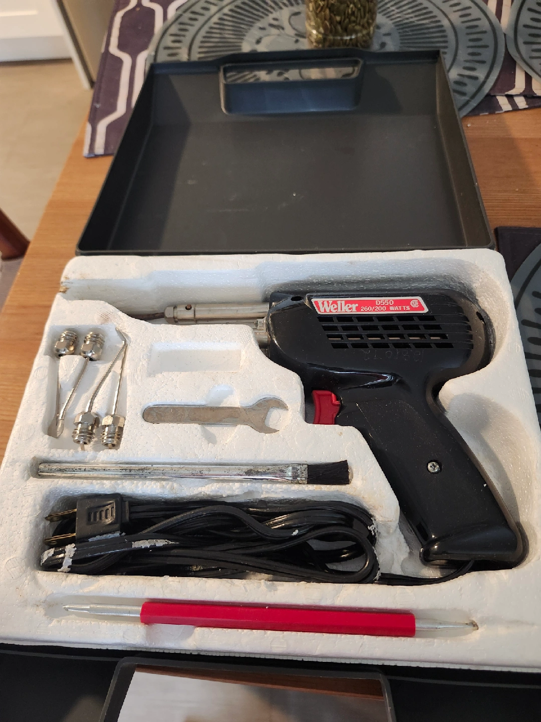Selling a Weller D550 260/200 Watt soldering gun. It comes with its original case and all the accessories you see in the picture. A great tool for any soldering needs!