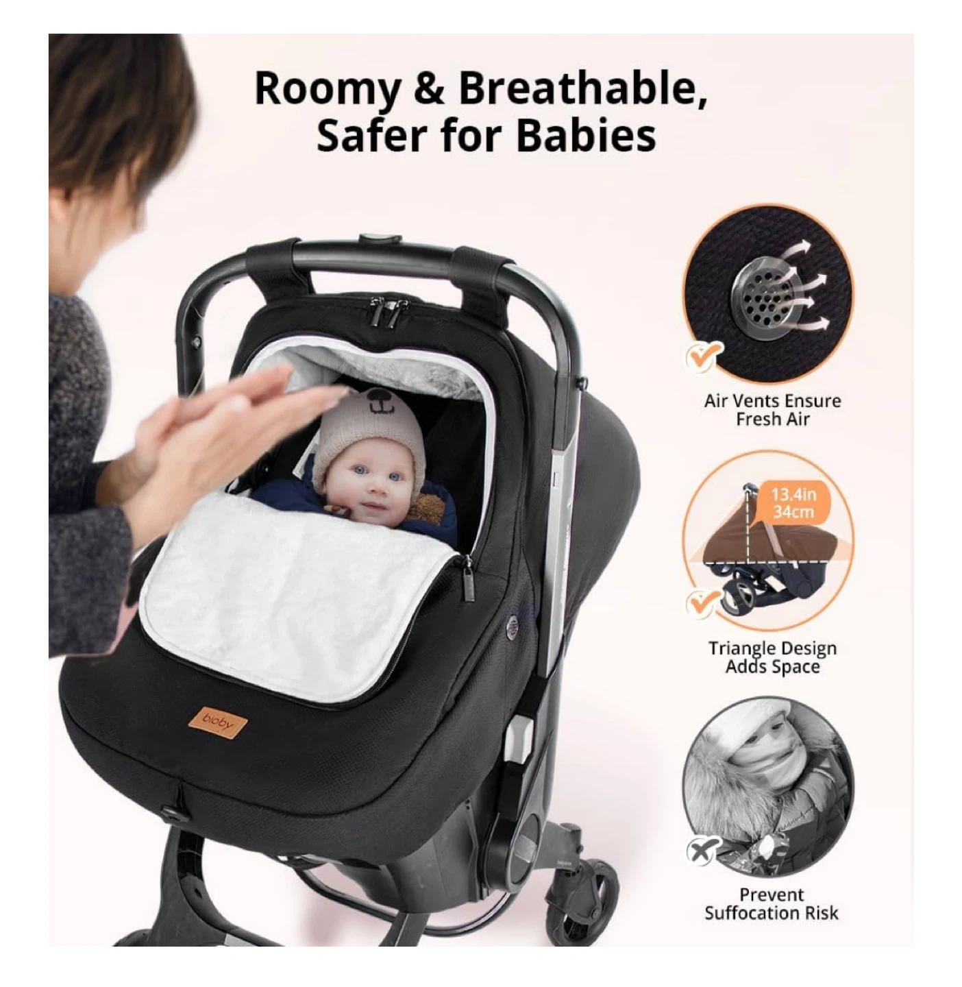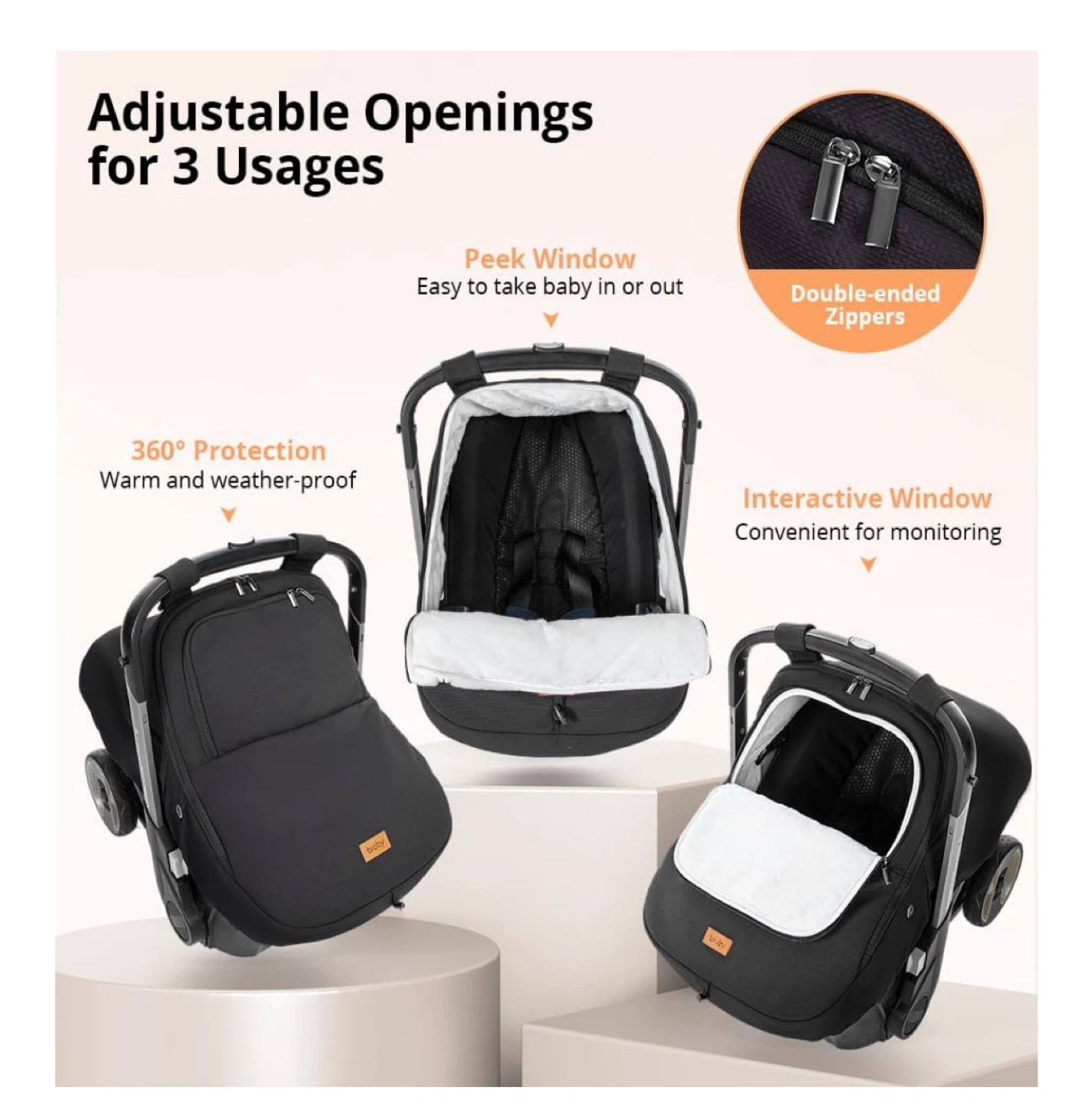 Keep your little one cozy with this Bioby Winter Car Seat Cover! It's designed to fit most baby car seats and is perfect for boys and girls. The cover provides roomy, cozy, and warm protection with a thick fleece lining and a breathable hole design. It's also waterproof, windproof, rainproof, snowproof, and UV-proof!