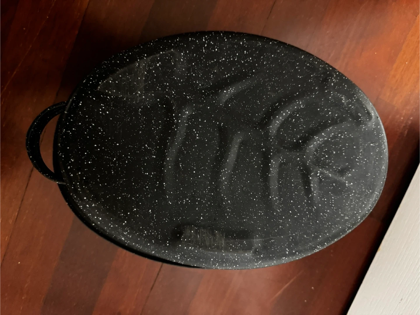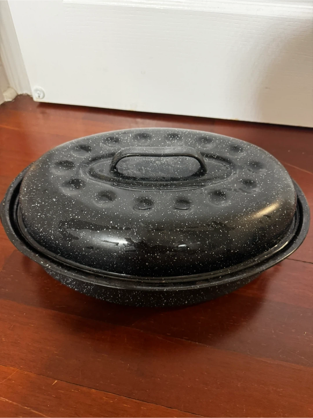 I'm selling a oval Granite Ware roaster with a lid. It's in great shape and ready for your next roast! The roaster is black with a speckled pattern. It measures about 14 inches across. $20 Yonge and finch area