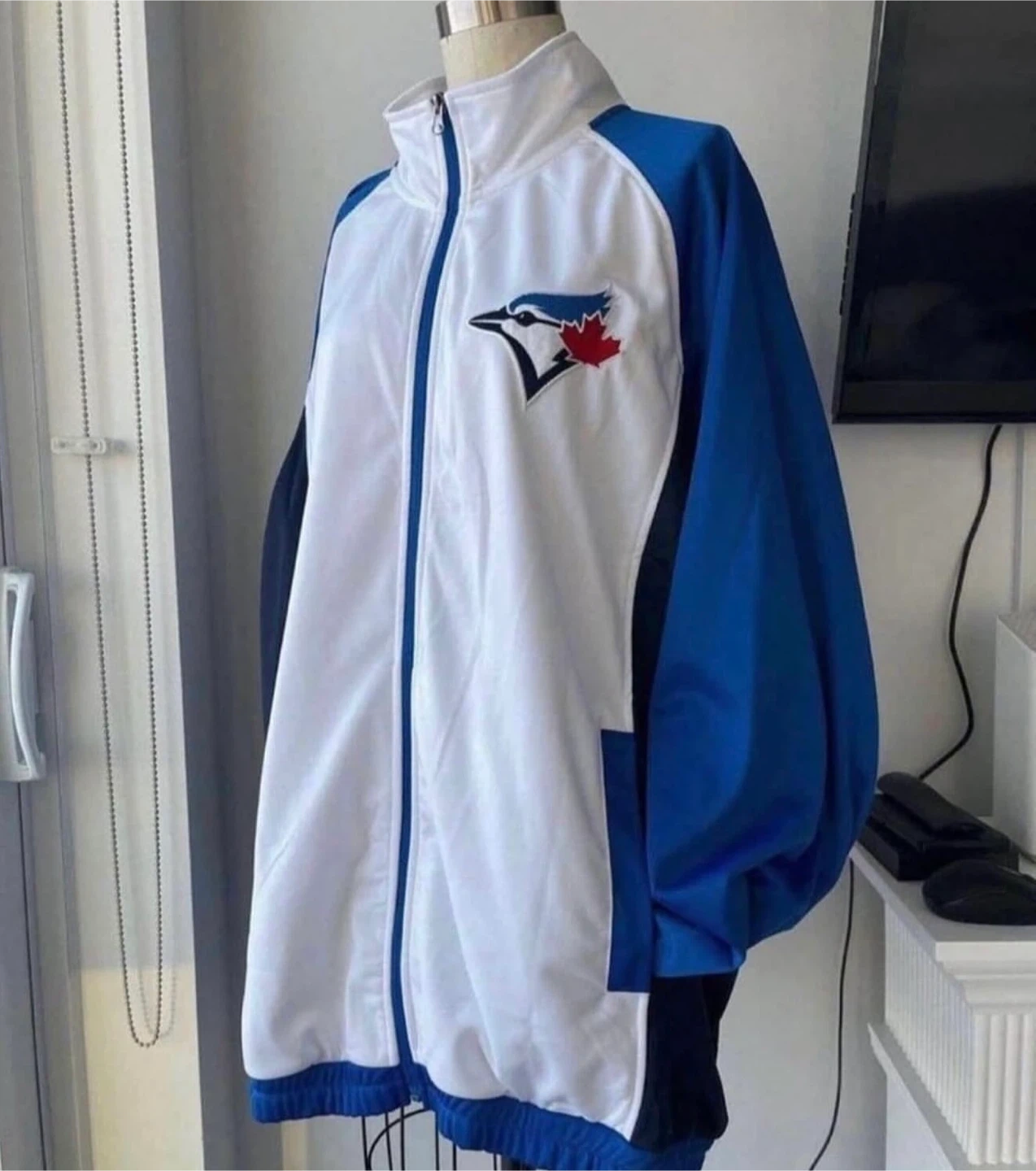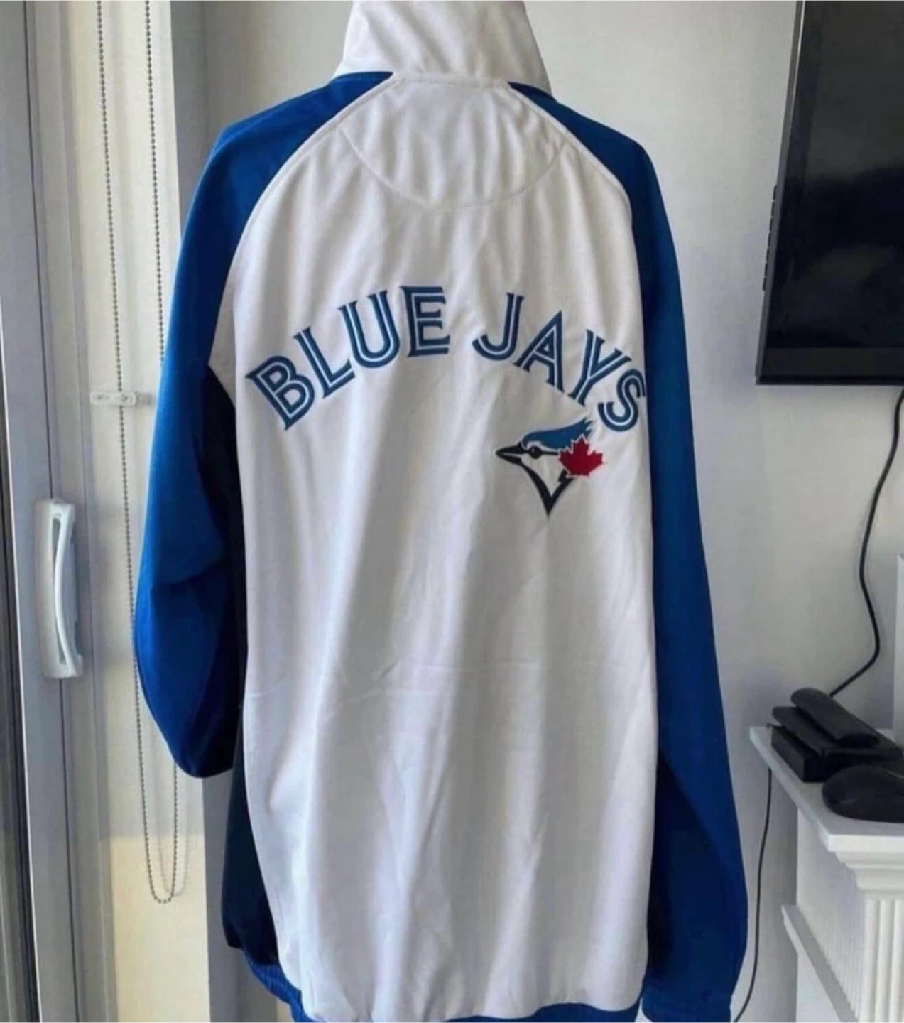 Selling a Toronto Blue Jays jacket in great condition! It's white and blue with the Blue Jays logo on the back and front. Perfect for showing your team spirit!