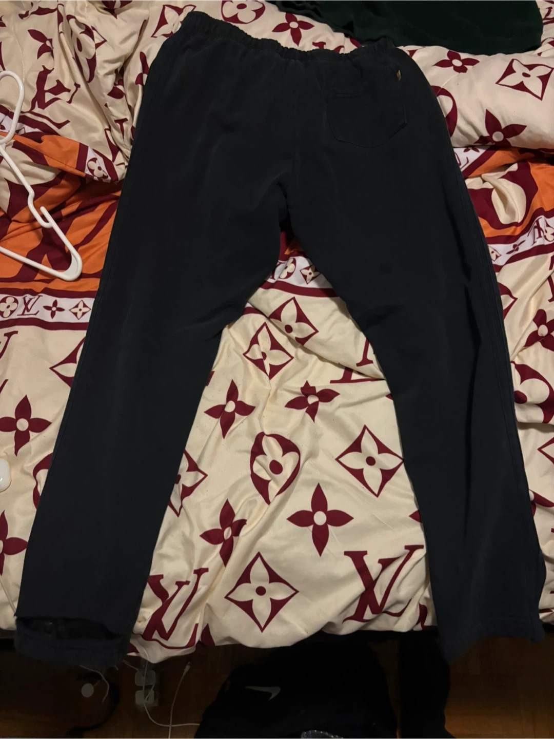 Selling a pair of black sweatpants from October's Very Own (OVO). They're a size medium and in good condition. Features the OVO owl logo. Perfect for lounging or casual wear!