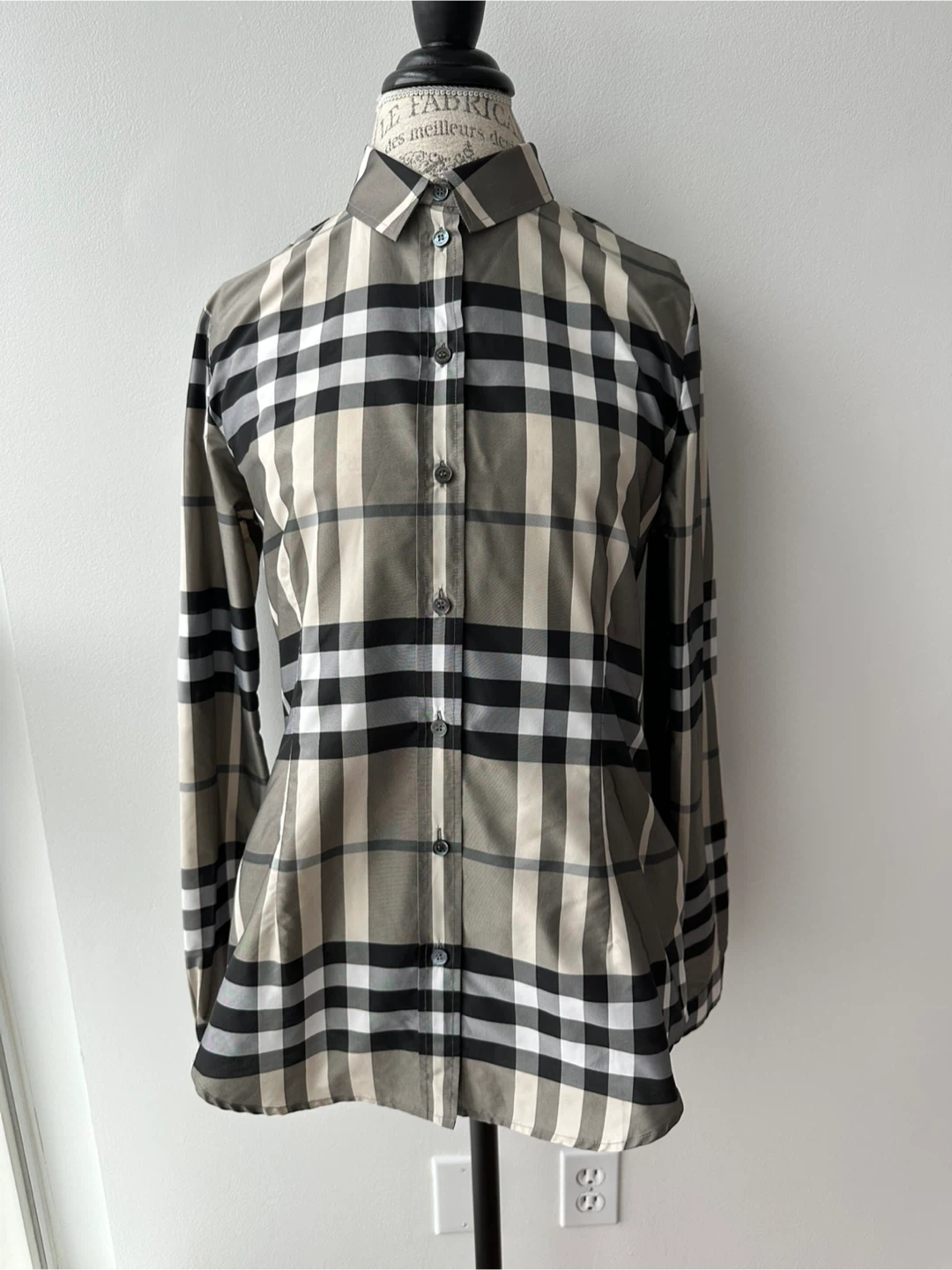 Selling a Burberry button-up shirt with a classic check pattern. Expert craftsmanship has been paid attention to the darting on this shirt, giving it a classic tailored fit. Perfect for the office or worn casually with the buttons opened. Length: ~28 inches Bust: ~20 inches