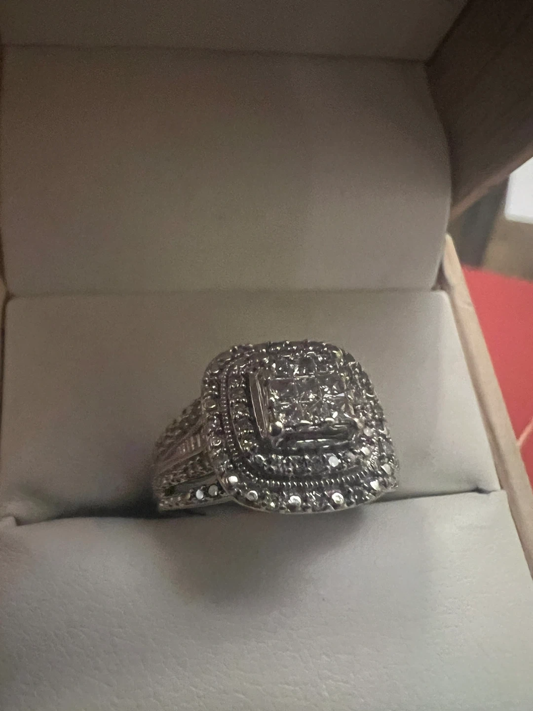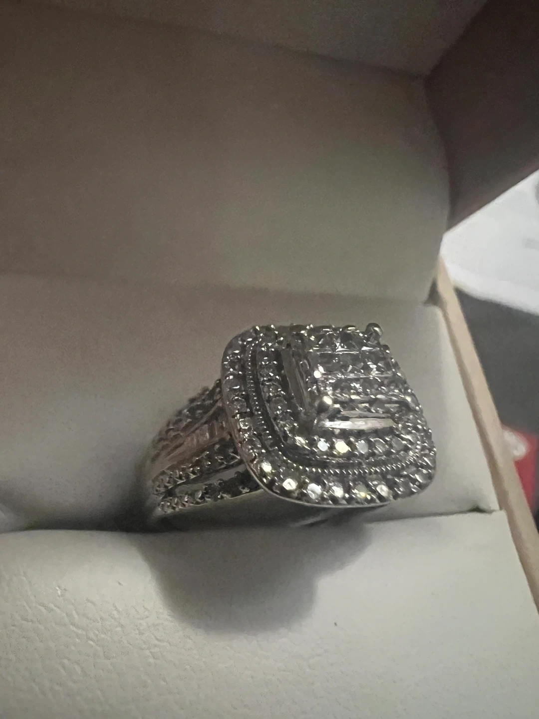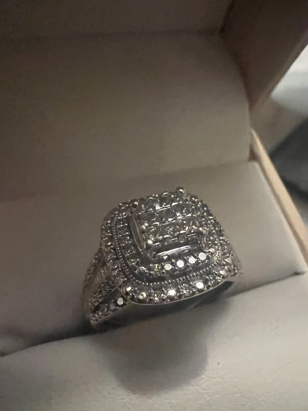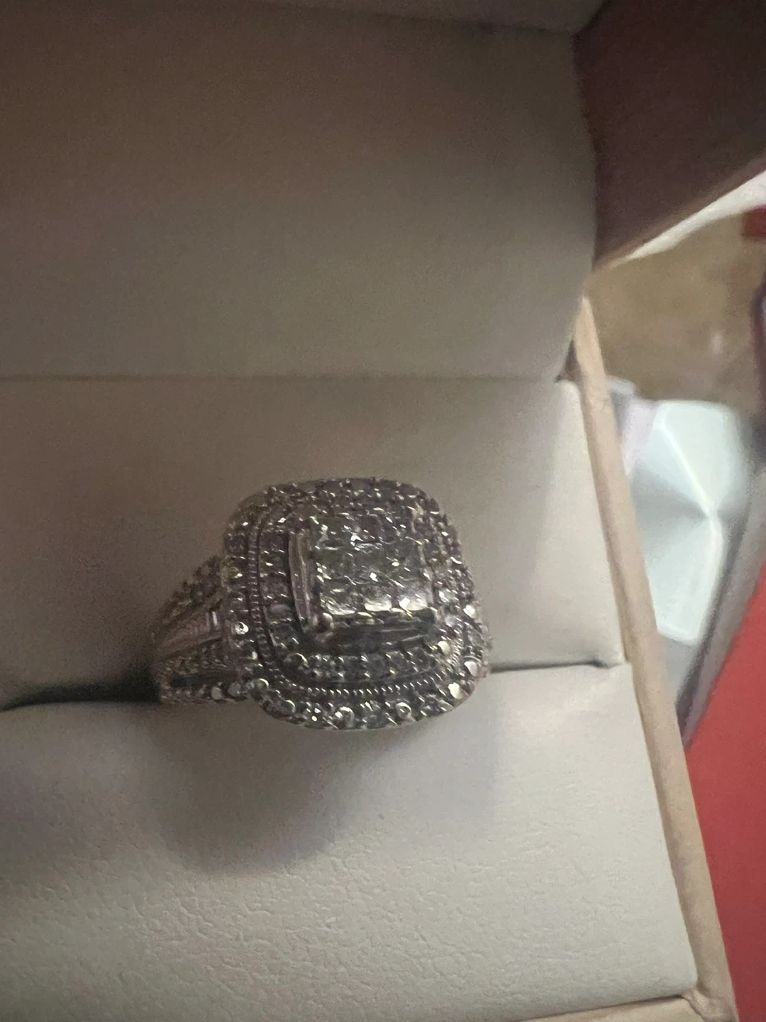Selling a ladies 10 k diamond ring. It's in excellent condition and comes with its box. It's a beautiful piece! Size 6.5-7