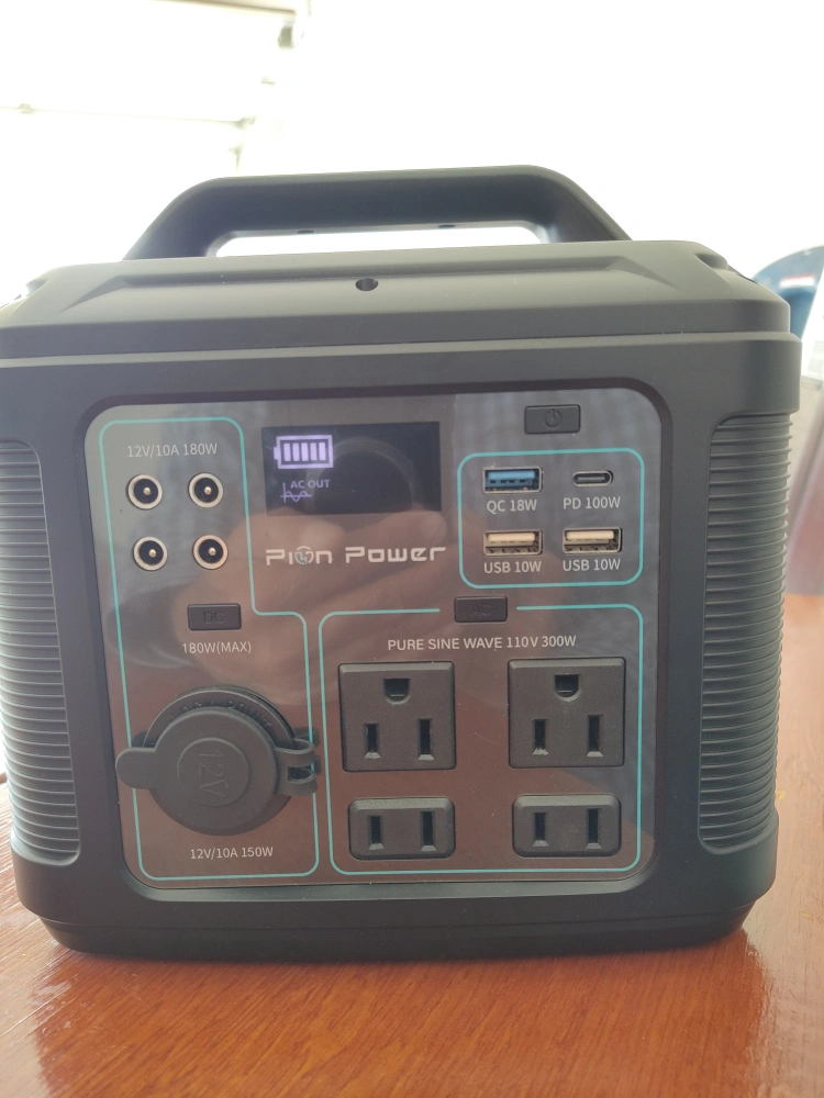 Selling a Pion Power portable power station. It features multiple outputs including 12V/10A, USB QC 18W, USB 10W, USB-C PD 100W, and 110V 300W pure sine wave outlets. Great for camping or emergencies!