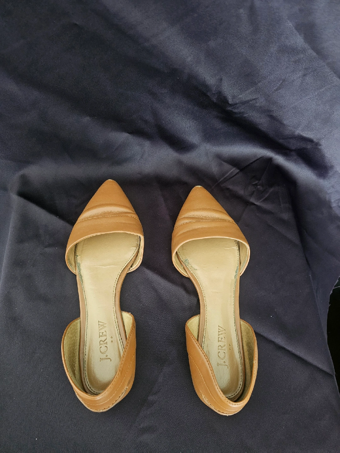 I'm selling a pair of used J.Crew pointed flats. They're a tan colored leather. signs of wear on the toes. priced accordingly Size 6. $15 Open to offers. Pick up only Cash only near WESTON GO/UP train station