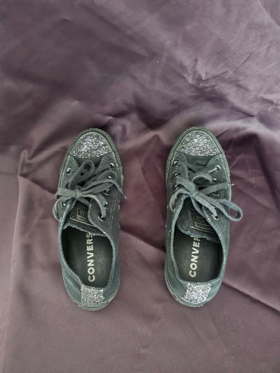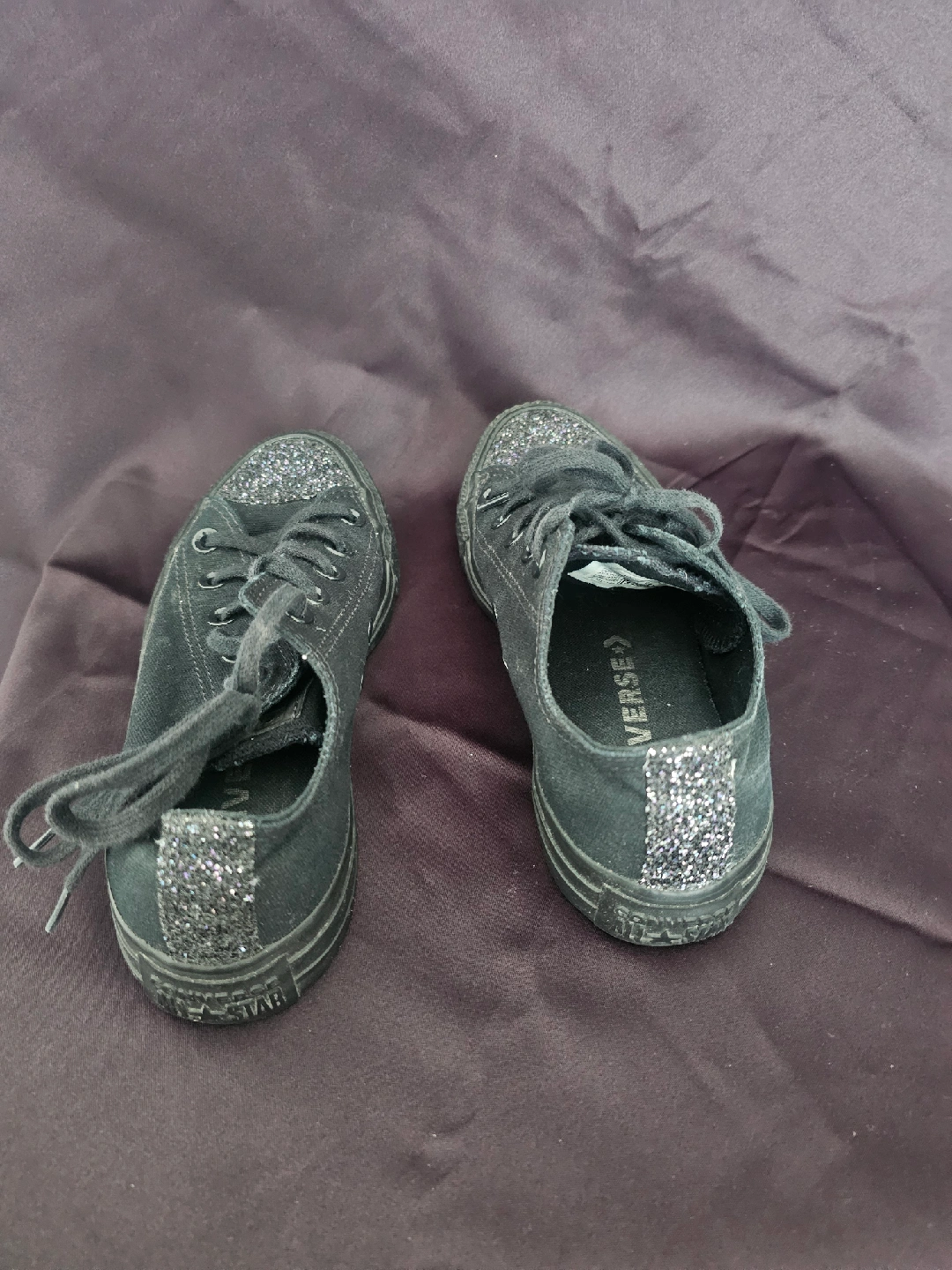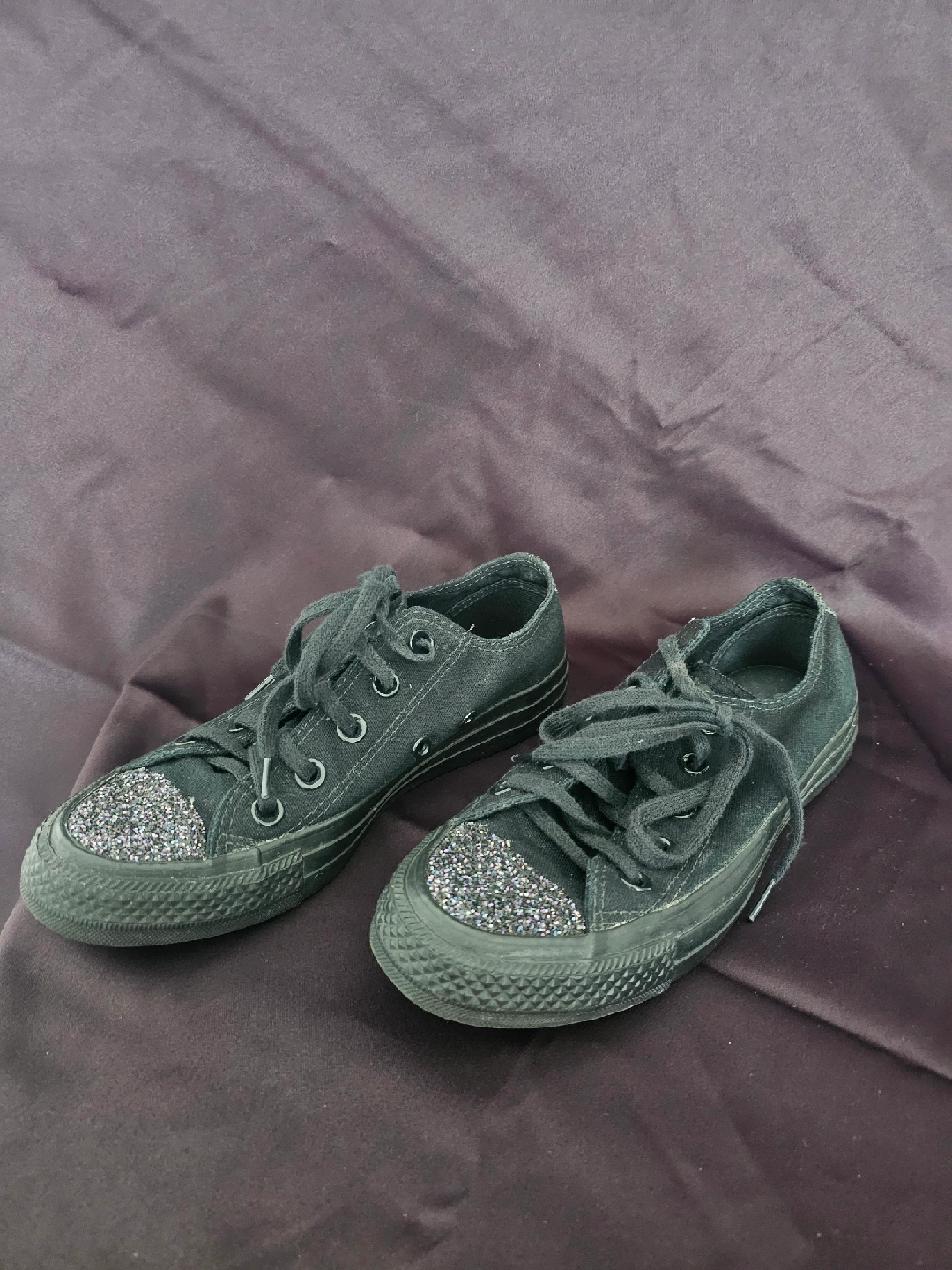 Selling a pair of Converse All Star shoes in black with glitter detailing! They are in good condition and are a size 5. Perfect for adding a bit of sparkle to your outfit! used but in great condition. $20 Open to offers. Pick up only Cash only near WESTON GO/UP train station