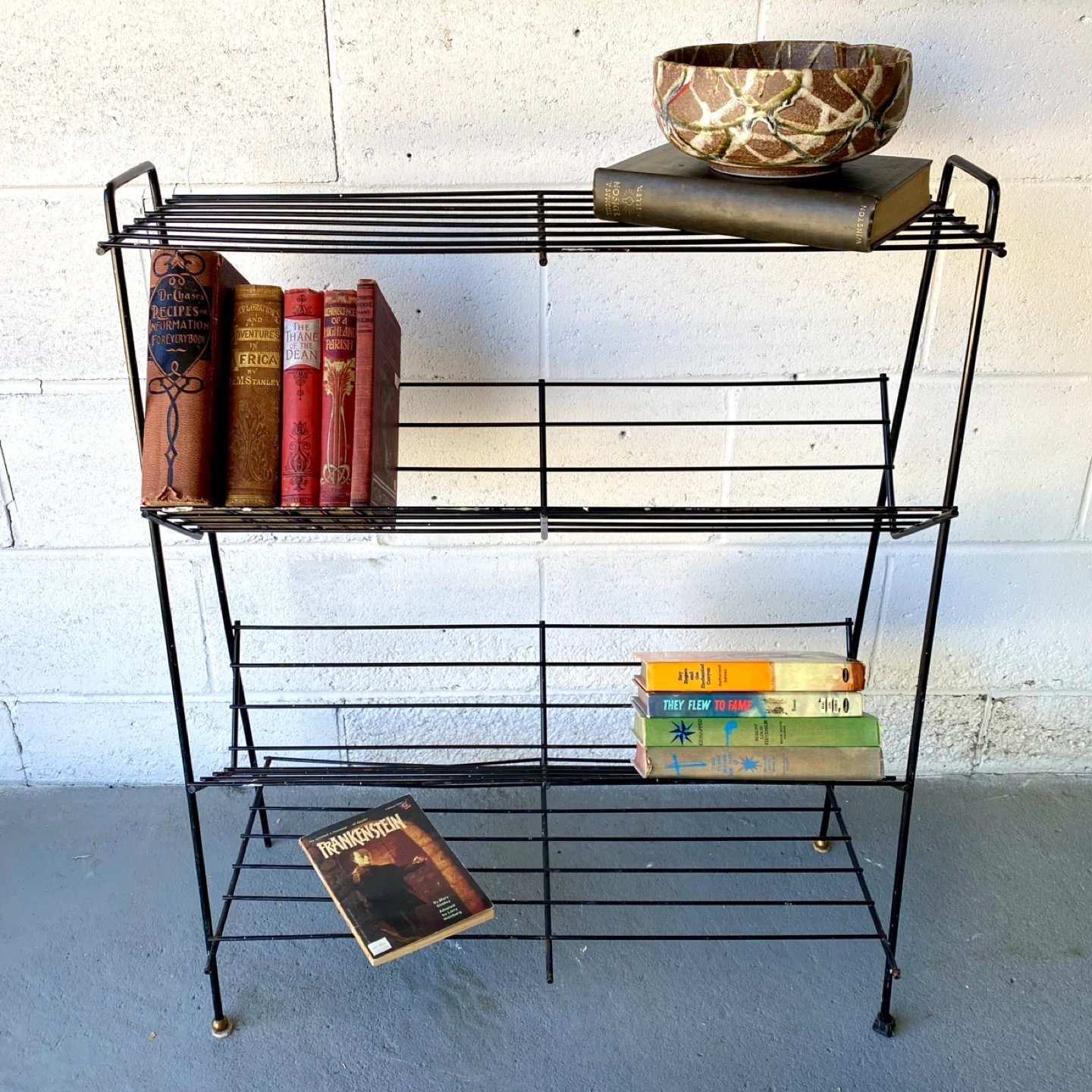 Vintage mid-century black metal wire 4-tier bookshelf with 2 angled shelves. ~26βw x 32.5βh x 12βd π₯$45 - books/decor sold separately β Yes, it is available π Pick up near Bloor & Ossington π Downtown delivery extra