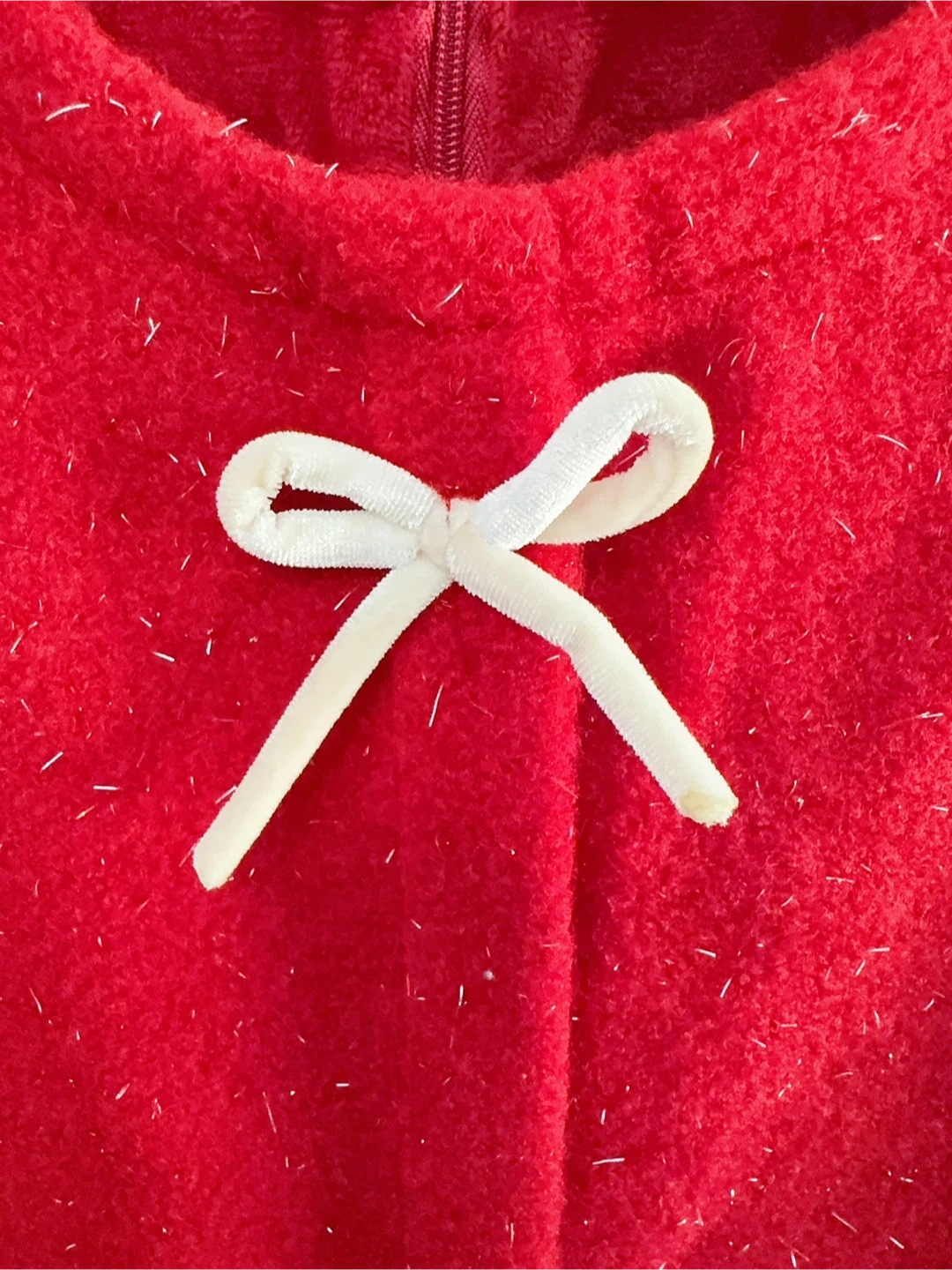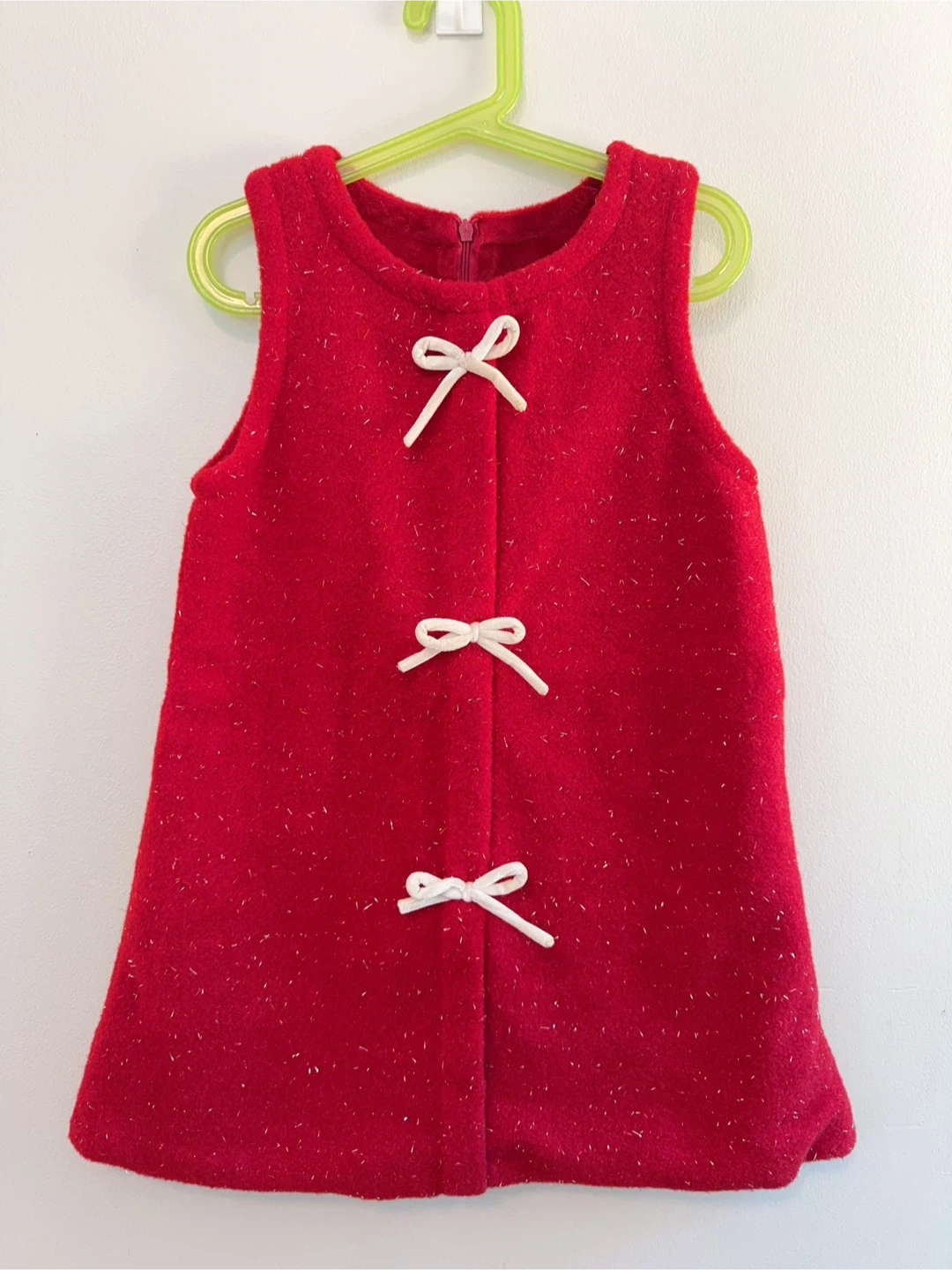 A cute red sleeveless dress perfect for Xmas! It features three adorable white bows down the front.