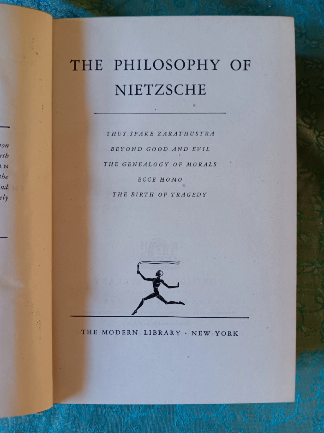 Selling a copy of "The Philosophy of Nietzsche" from the Modern Library. Includes works like Thus Spake Zarathustra, Beyond Good and Evil, and The Birth of Tragedy. A great addition to any philosophy collection!