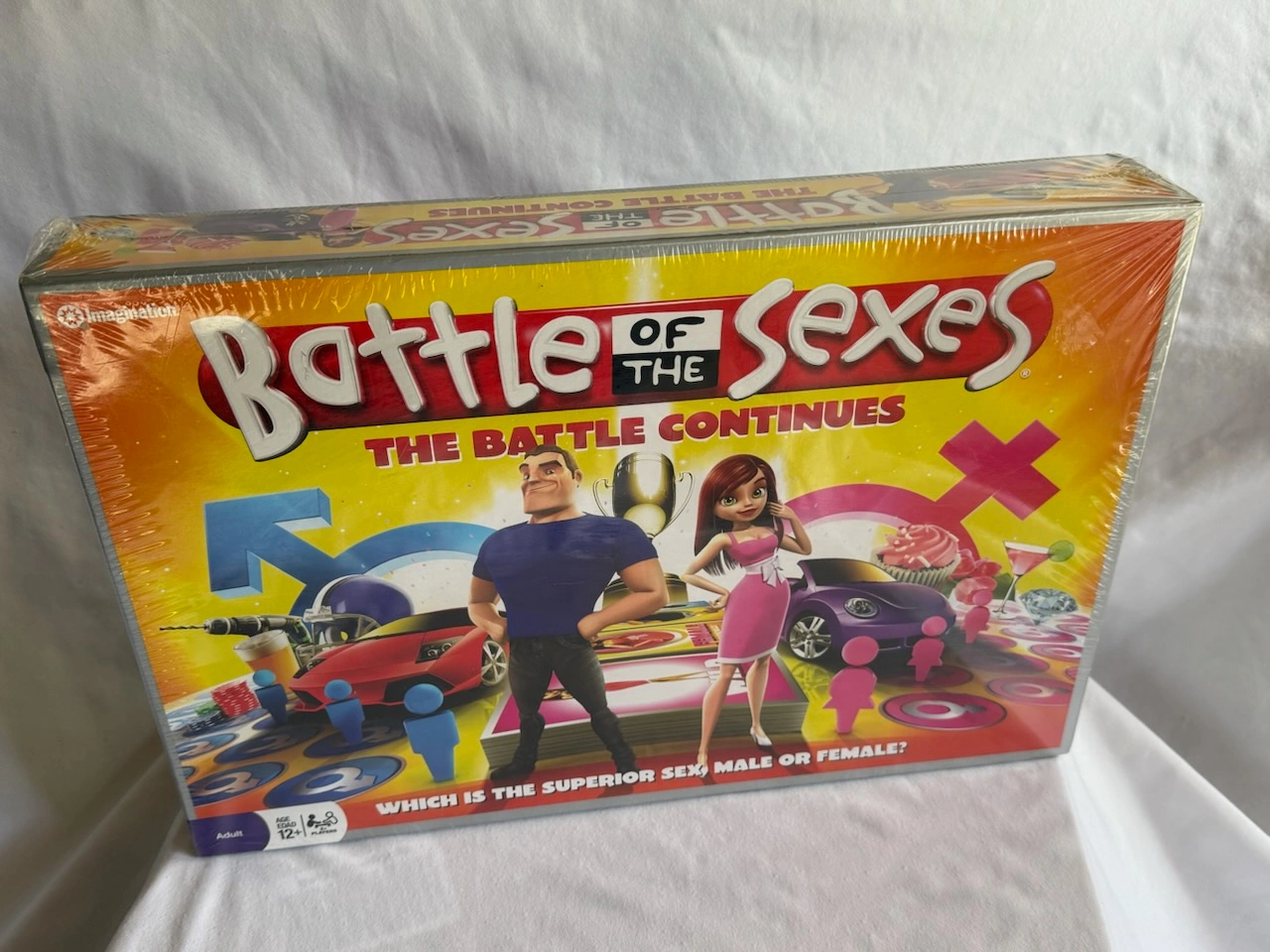Selling a brand new, sealed copy of Battle of the Sexes: The Battle Continues board game! It's still in its original packaging, ready for some fun and engaging gameplay. This game is perfect for adults and teens aged 12 and up. Get ready to see who really knows the opposite sex!