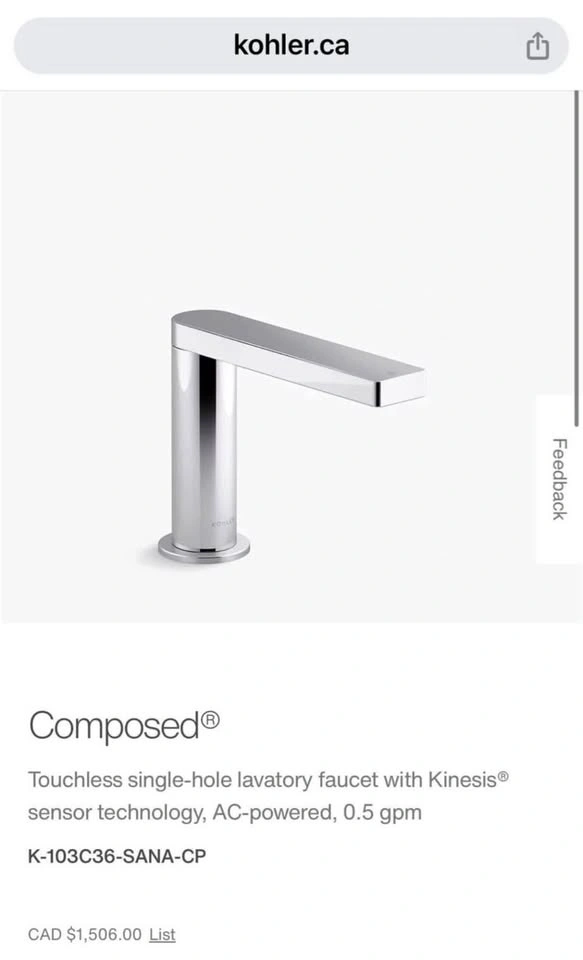 Brand new in box. Composed Ac Touchless Single Hole Bathroom Faucet with Drain Assembly and Kinesis Sensor Technology, Mixer, Dc-powered QTY:4 in stock now. Pickup at 8880 Williams Road Richmond. Cash or E-transfer both are okay.