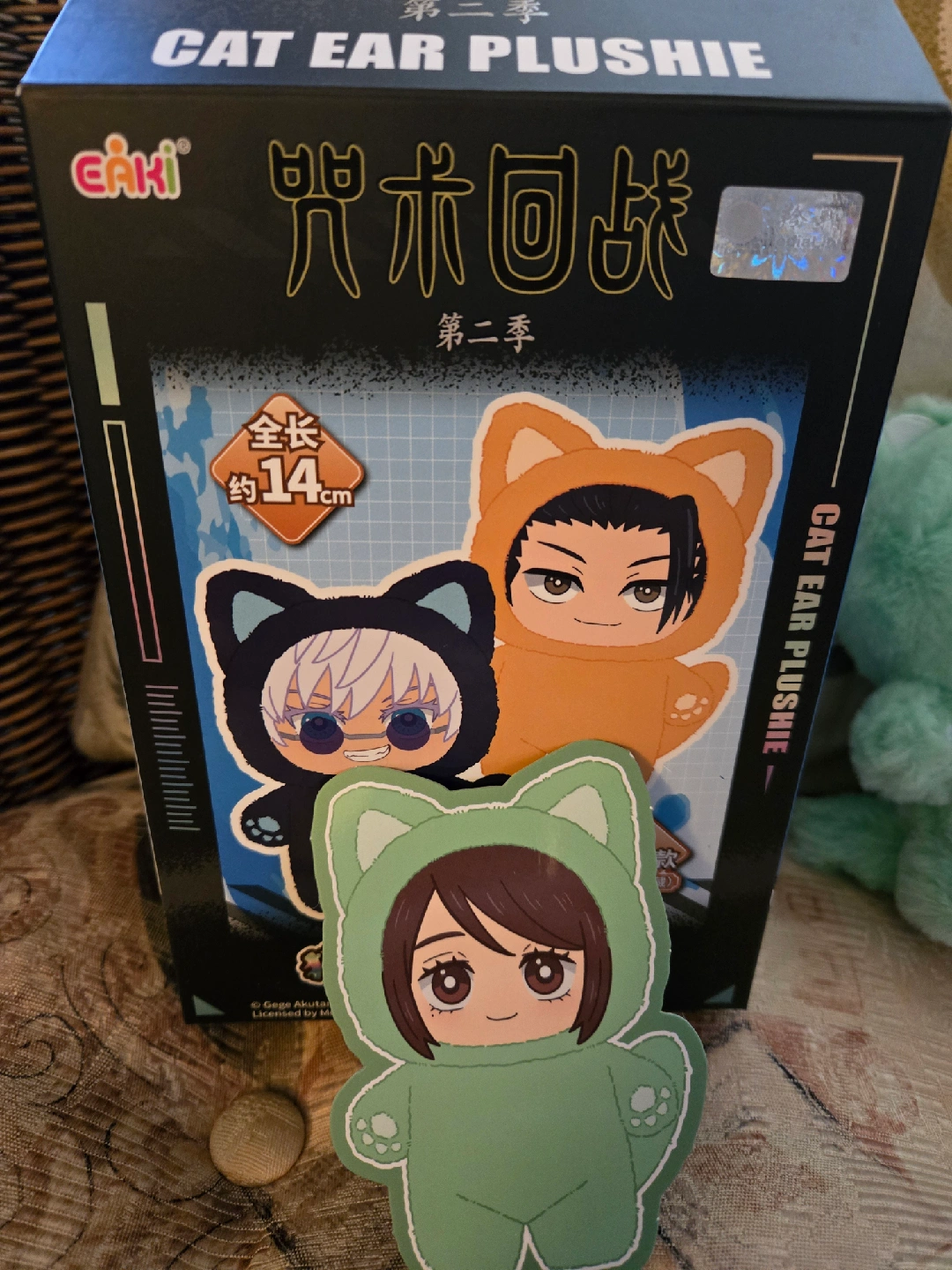 Selling a cute EAKI Jujutsu Kaisen Cat Ear Plushie Shoko Leiri ! It's in a lovely mint colour and is about 14cm tall. Perfect for any Jujutsu Kaisen fan! Brand new! Box was opened but bag is sealed! Pick up will be at Richmond Center.