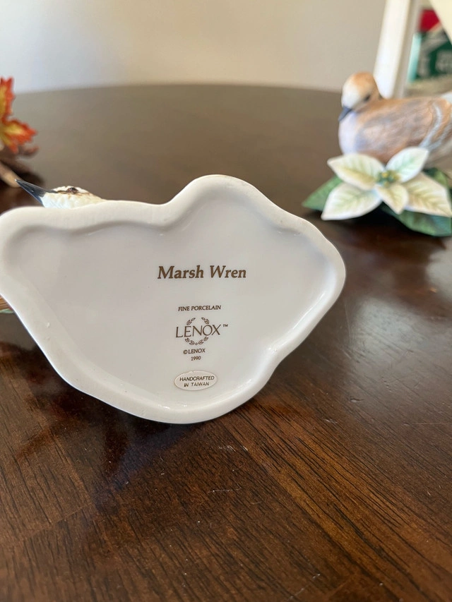 This Lenox Marsh Wren figurine is a beautiful piece of fine porcelain, handcrafted in Taiwan in 1993. It's in great condition and showcases intricate detail. Add a touch of nature-inspired elegance to your collection with this charming piece! Specifications: * Brand: Lenox * Collection: Garden Birds * Type: Figurine * Material: Fine Porcelain * Year: 1993 * Origin: Handcrafted If the ad is up, it's available! Please check out my other ads