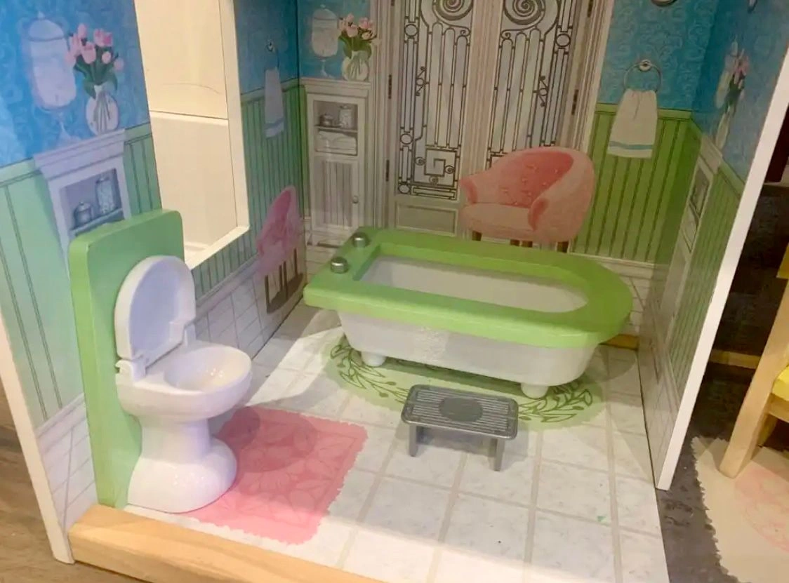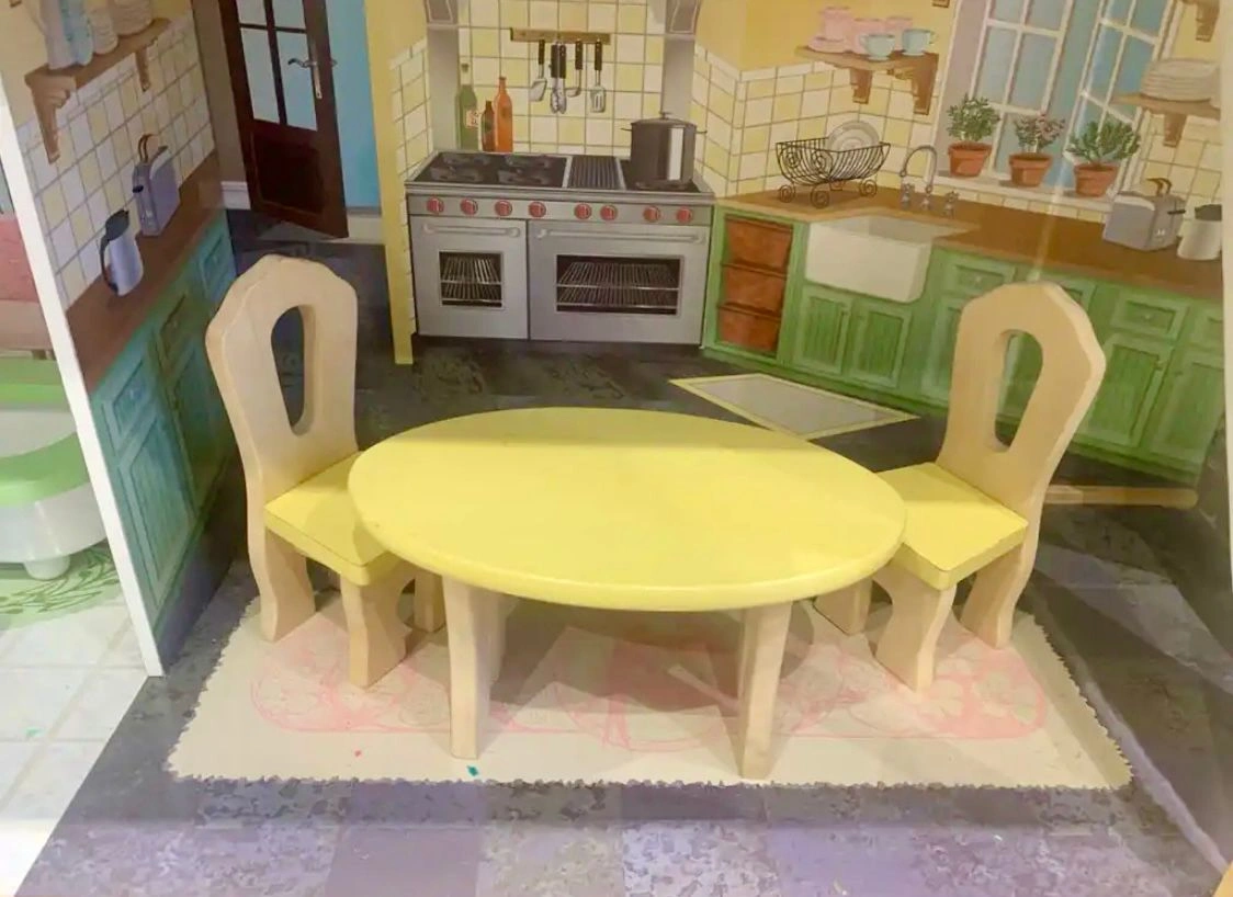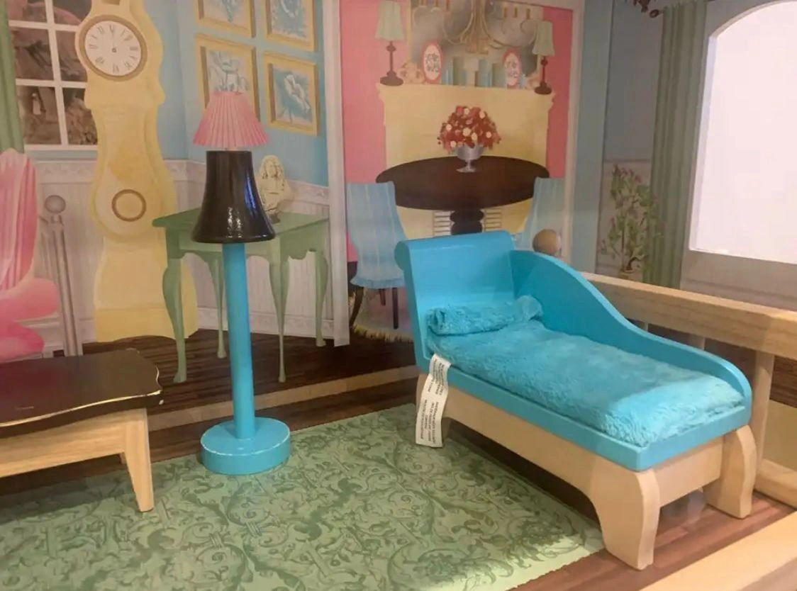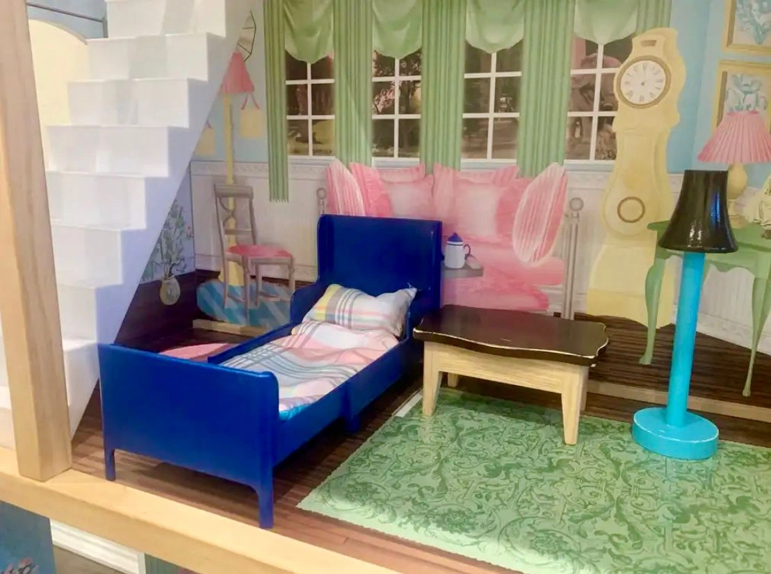 Selling a dollhouse that comes with furniture. It includes beds, chairs, tables, and other accessories.