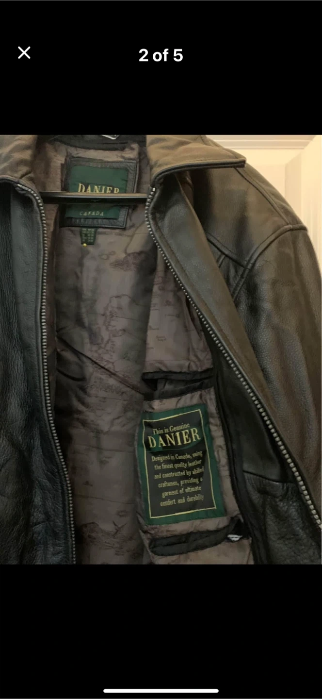 I'm selling a Brando leather jacket in size XL. It's in good condition and ready for a new home! The jacket is black and made of genuine leather. It has a unique lining with a map design. It's a stylish and durable piece for anyone looking for a classic leather jacket