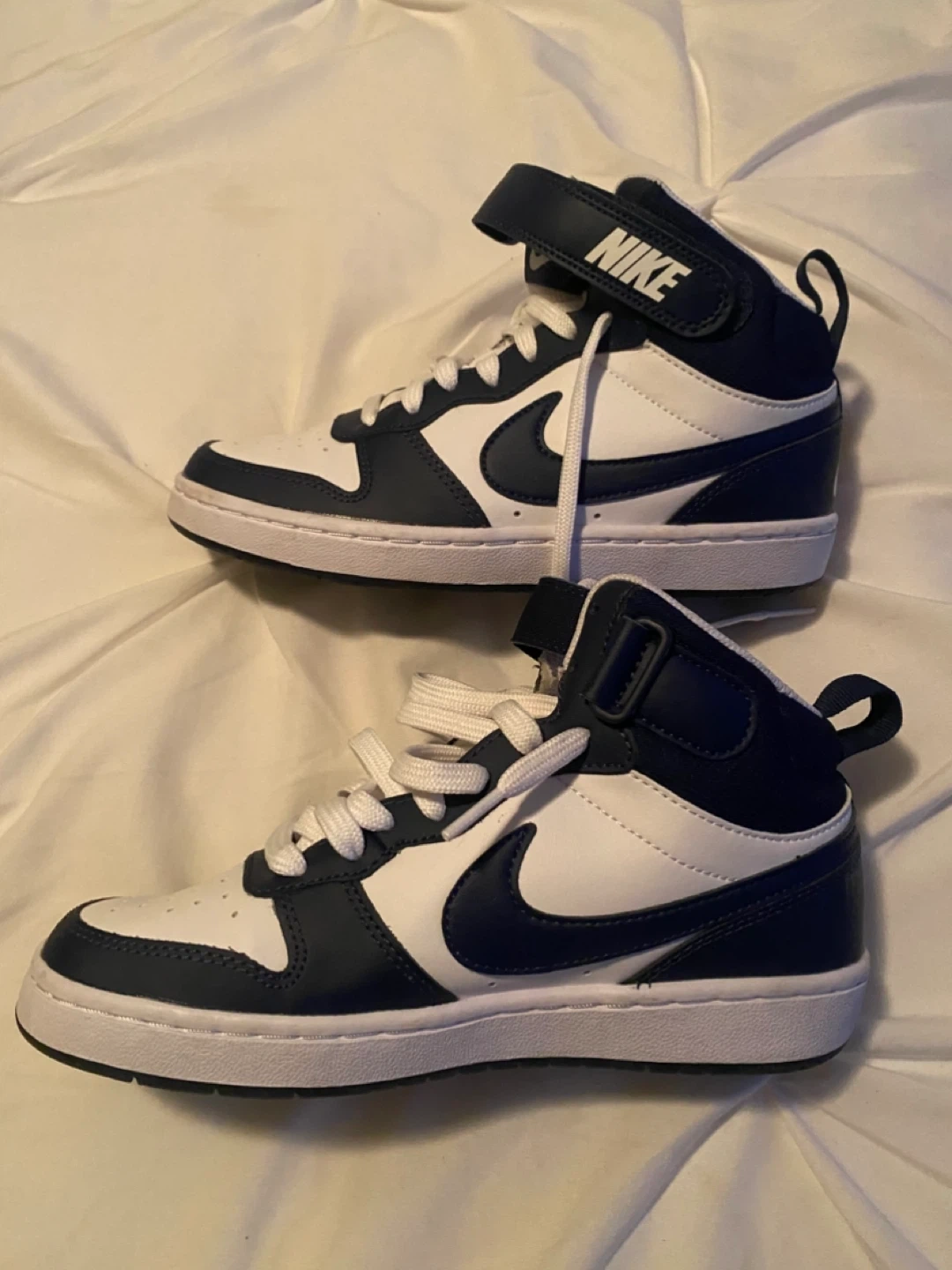 Classic Nike Court Borough Mid 2 shoes in a stylish navy and white colourway! These are in great shape and ready for a new home. Perfect for everyday wear or hitting the court