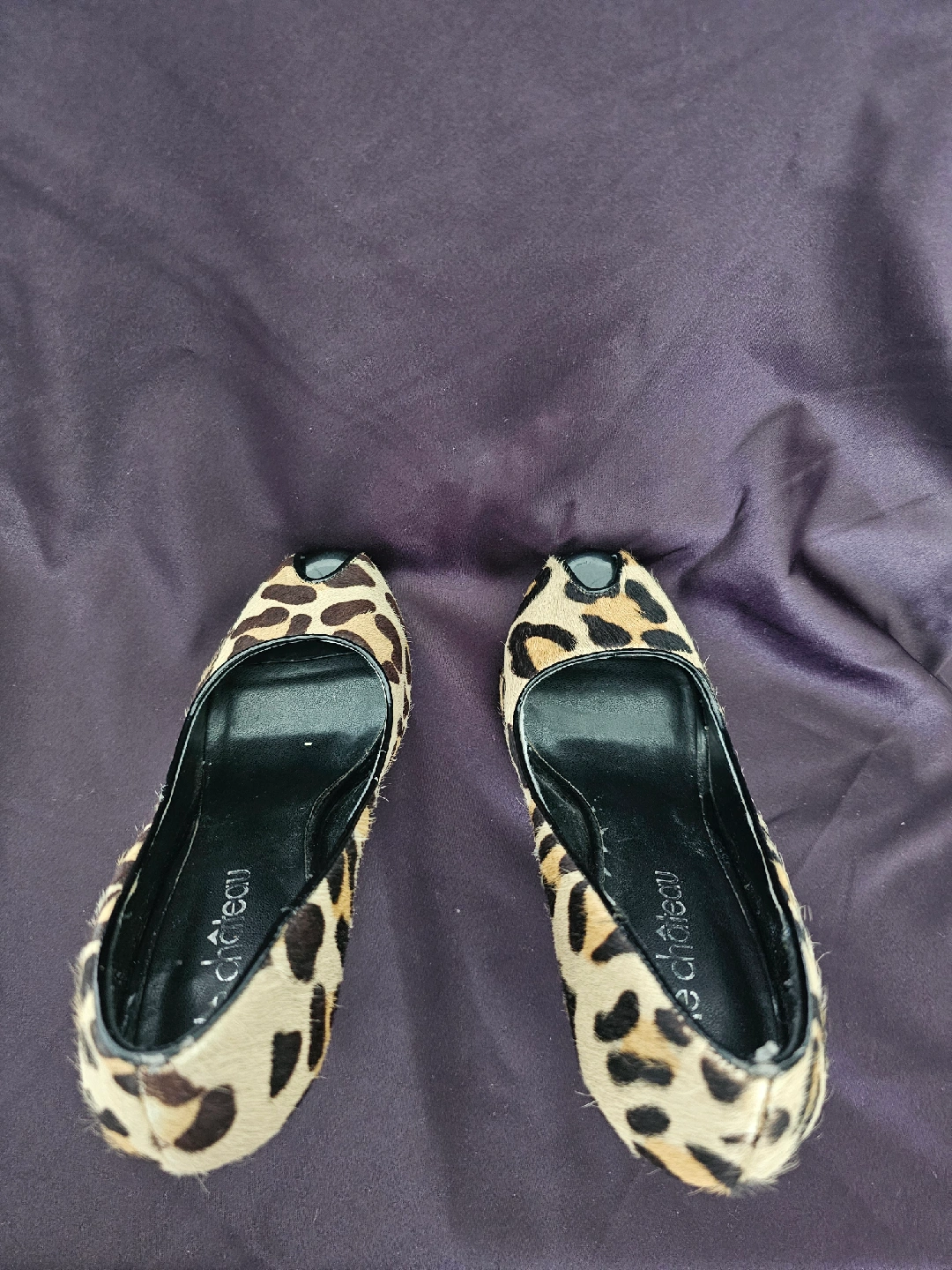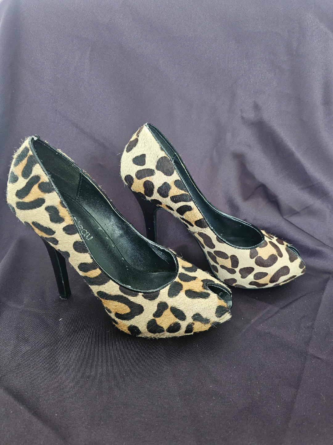 Le Chateau peep-toe heels with a fun leopard print. gently used, very good condition. Size 5 $10 Open to offers Pick up only Cash only near WESTON GO/UP train station