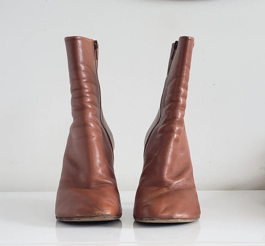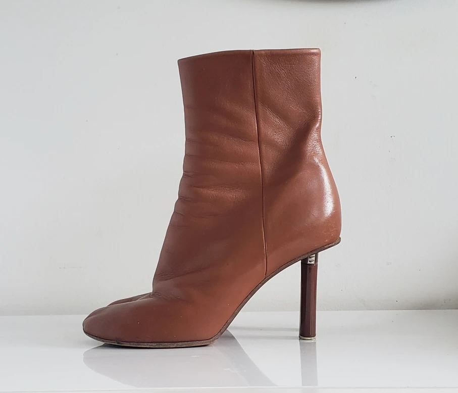 GUC. brown supple leather, some scratchea on heel. Designed by Demna who later went on to be creative director at Balenciaga, and now Gucci.