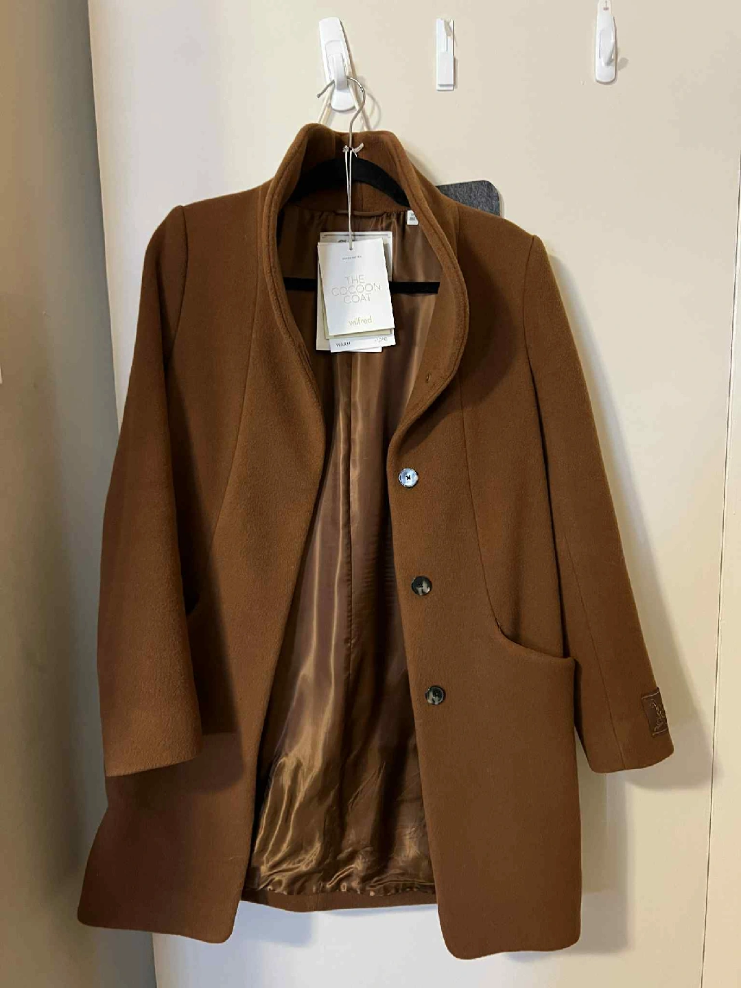 Selling a Wilfred The Cocoon Coat in size XS. It's a beautiful brown colour and made of virgin wool and cashmere from Italy. It also features vegan chamois detailing. A classic and stylish fit for any wardrobe! regular price 375$+Tax in Aritzia