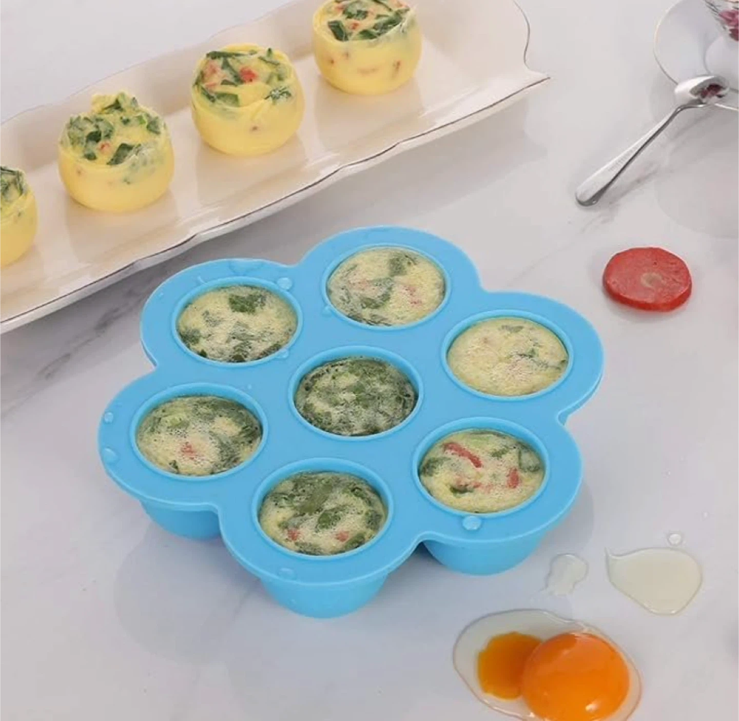 Egg Bite Silicone Mold - For 5,6,8 qt Instant Pot and other Pressure Cookers, Reusable Food Container for Storage with Lid (Blue) Condition: Like New Location: Bloor & Jane Smoke and pet free home Cross-posted ============================== About this item: PREMIUM QUALITY: Made from high quality food grade silicone, safe and durable PRECISE SIZING: 8.25'' diameter to fit perfectly in 5/6 qt or 8 qt instant pot, a great homemade accessory for your pressure cooker VERSATILE: Tray and lid may be used in the freezer, and also in the microwave and the oven (up to 425 F) for use with baking, for food storage/serving, or as a mold for egg bites, egg muffins, yogurt, ice cream EASY: Non stick surface to easily make and pop out your food