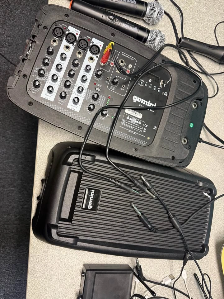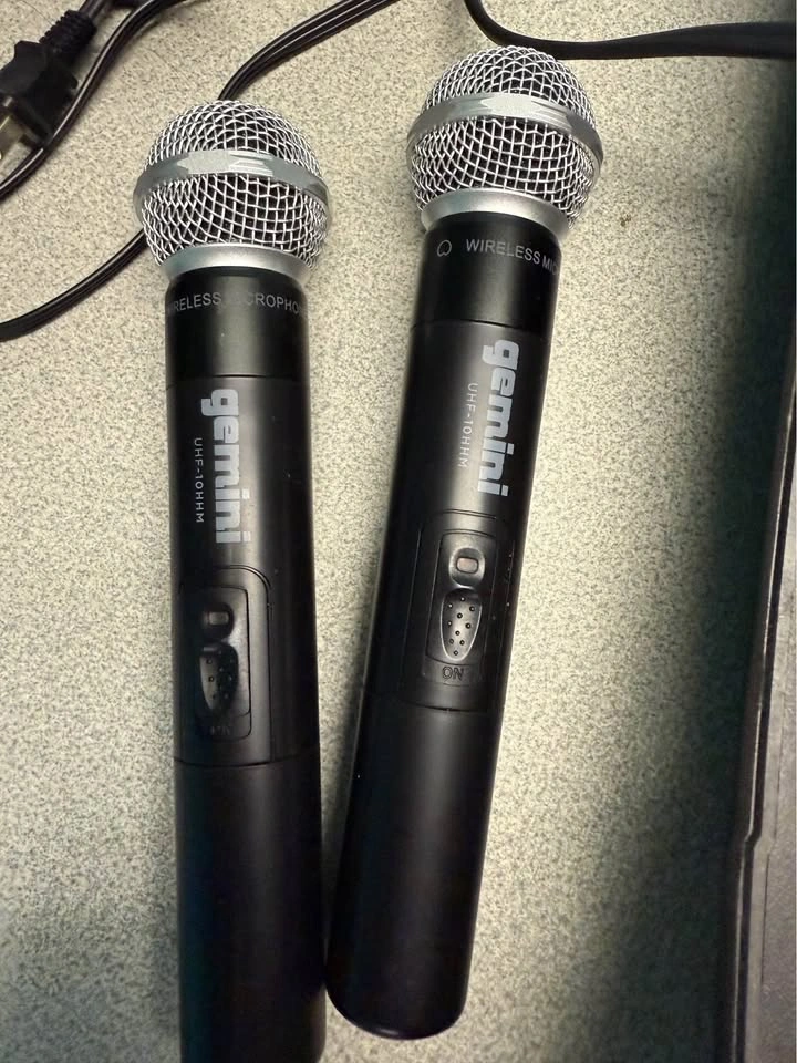 Music system with 2 speakers, 2 stands, 2 mics and other accesories are available for sale everything works completely fine. I alrwsy put way more low and firm non negotiable price for this.