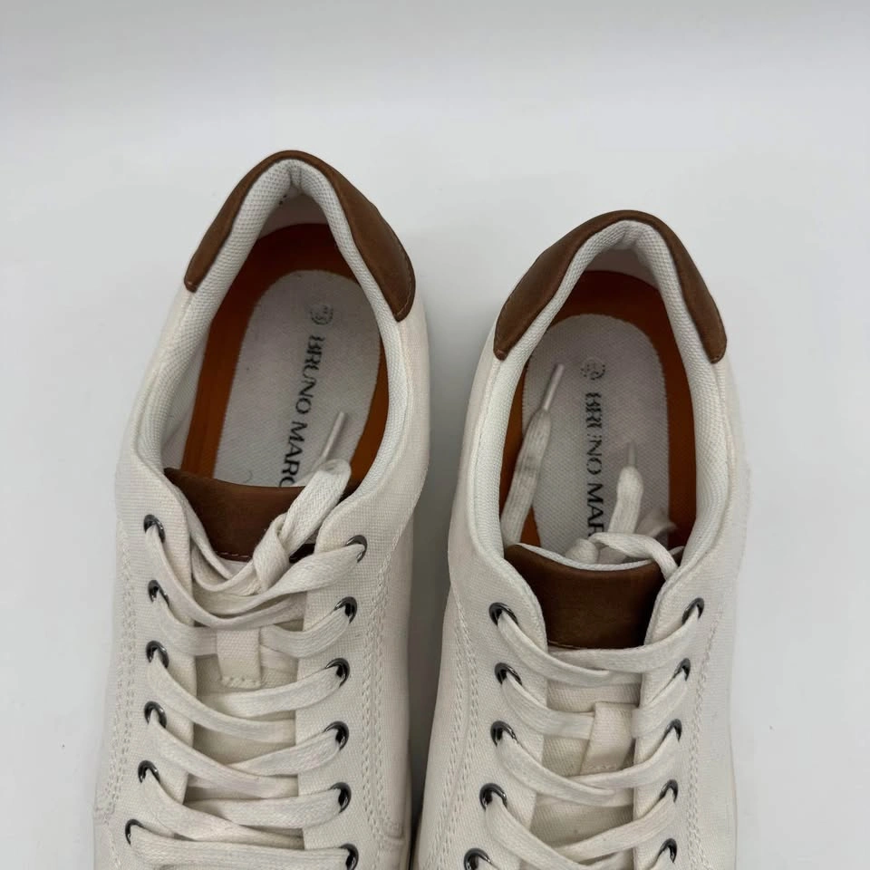 Bruno Marc men's casual sneakers in white canvas with brown suede accents. Comfortable lace-up design, perfect for everyday wear. Classic and versatile style that pairs well with jeans, chinos, or shorts. Brand: Bruno Marc Size: US 10.5 / EU 44 / UK 9.5 Color: White with brown detail Material: Canvas upper with suede accent Condition: Used, in good condition with light signs of wear Pickup in North York Delivery available for extra (S11)1334