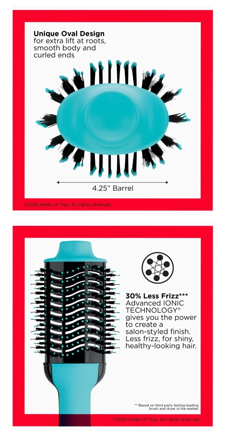 Looking to sell my Revlon One-Step Volumizer and Ionic Hair Dryer in the cool mint colour! It gives you the power to create a salon-styled finish with 30% less frizz. It's designed with an oval shape for extra lift at the roots, smooth body, and curled ends. The barrel is 4.25 inches. It also has tangle-free combination bristles and innovative airflow vents for faster drying!
