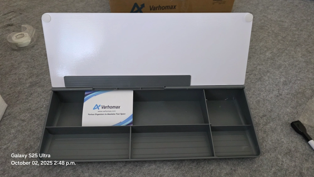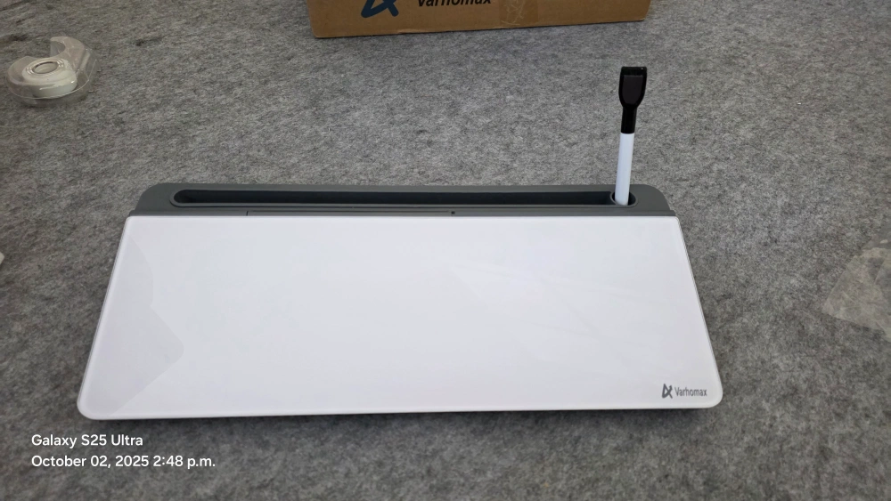 Selling a Varhomax desk whiteboard in gray. It's a great way to keep yourself on task with to-dos, reminders, and quick notes. It also has a storage caddy for computer keyboard stand. Originally bought for $38.99