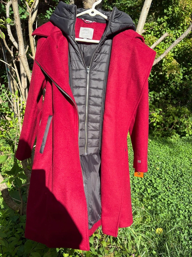 Stay warm and stylish with this new fall/winter coat — perfect for crisp October weather. Known for their luxury craftsmanship and timeless designs, Soia & Kyo creates outerwear that blends elegance, comfort, and warmth — and this piece is no exception! ✨ Features You’ll Love: - Size: Small (4-6) - Material: Premium wool blend – warm, soft, and lightweight - Featuring an interior, water-resistant recycled nylon bib - Color: Stunning Red/Oxblood — bold yet versatile - Condition: Brand New – Tags Still Attached ️ - Style: Elegant tailored fit perfect for both casual and dressy looks - ❄️ Season: Ideal for Fall & Winter layering Price - $385 CAD (Retail Price $595+) Pickup/Delivery: Thornhill Elevate your wardrobe with this luxury statement jacket — brand new and ready to make you stand out this season!