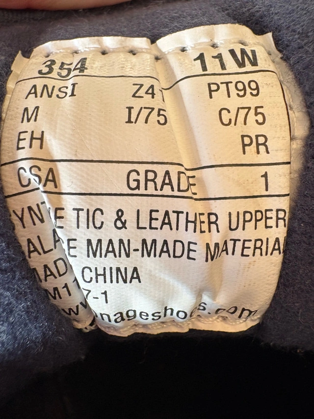 Get through Thanksgiving weekend projects and prep with durable steel toe shoes — safety and comfort rolled into one. Built for durability and designed for all-day comfort, these work shoes meet CCOHS Grade 1 safety standards, making them ideal for construction sites, warehouses, factories, and industrial environments. Product Details: - Brand: Iron Age - Size: Men’s 11 Wide - Colour: White - Toe Protection: Steel Toe for maximum safety - Safety Certification: Meets CCOHS Grade 1 criteria ✅ - Design: Low-cut, lightweight construction for improved mobility - Condition: Excellent — gently worn but in near-new shape Key Features: Grade 1 Certified: Trusted safety protection for demanding workplaces - All-Day Comfort: Cushioned insoles and supportive fit - Heavy-Duty Build: Designed to withstand tough job site conditions - Versatile Use: Ideal for construction, manufacturing, and warehouse environments Price - $75 CAD (Retail Price $180+) Pickup/Delivery: Thornhill Work smarter, safer, and more comfortably — these Iron Age Steel Toe Safety Shoes are built to keep you protected without sacrificing style or performance.