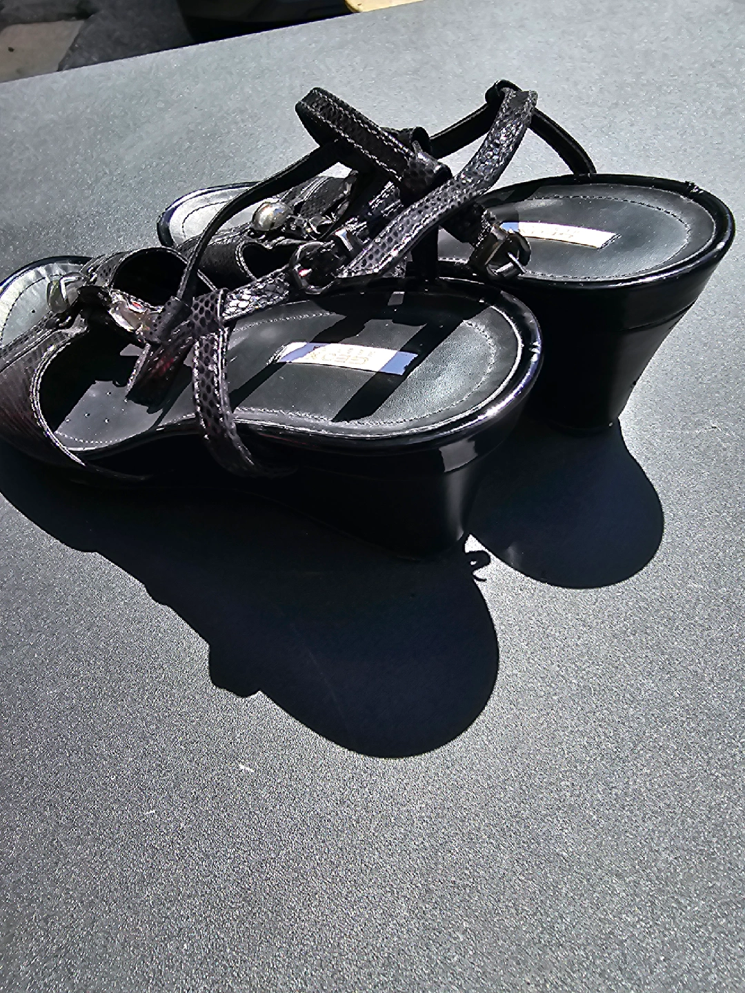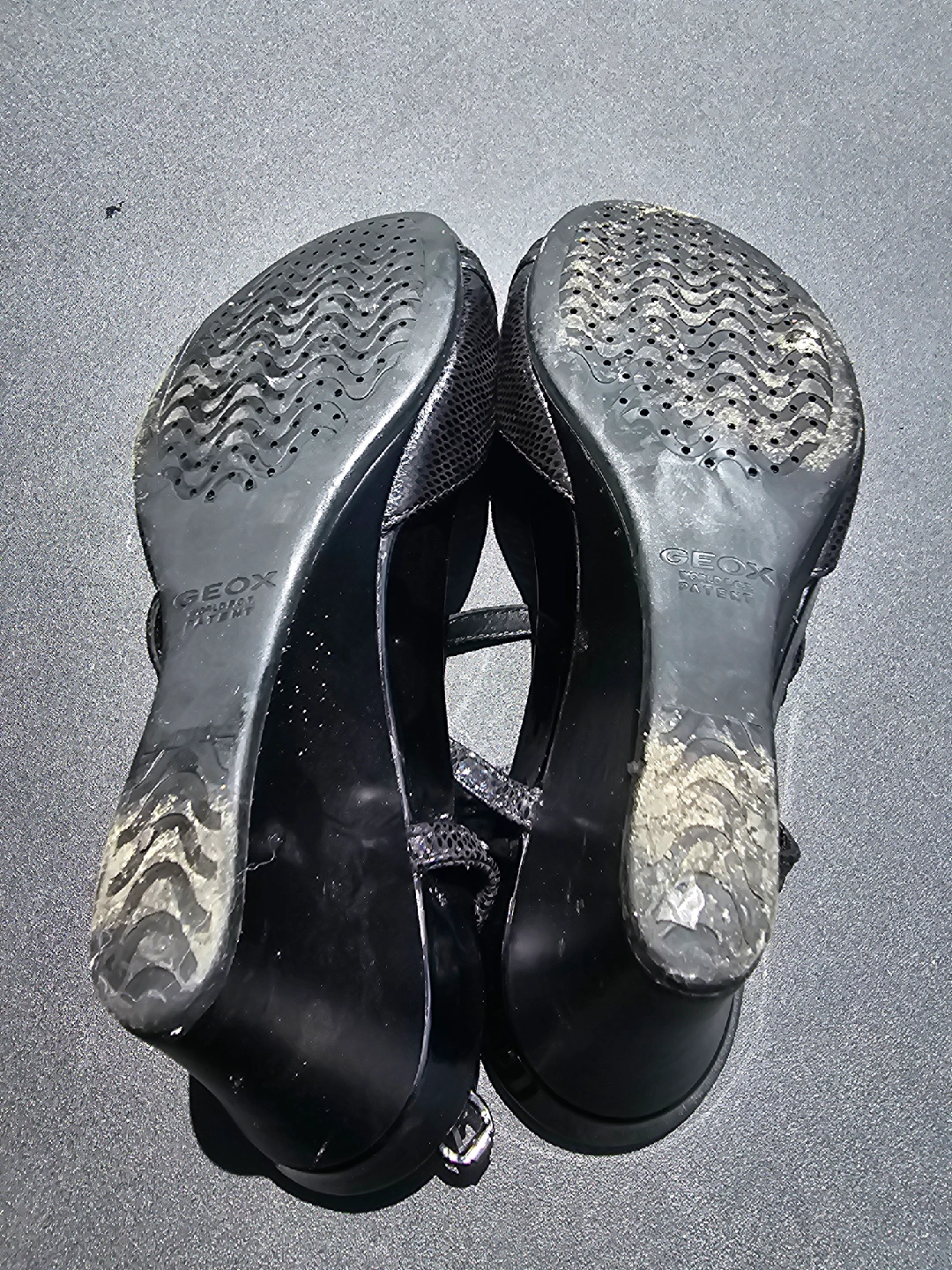 Cute black wedge sandals from Geox! They are a size 6 and have a stylish strap design. Perfect for dressing up or down, these sandals are ready for a new home