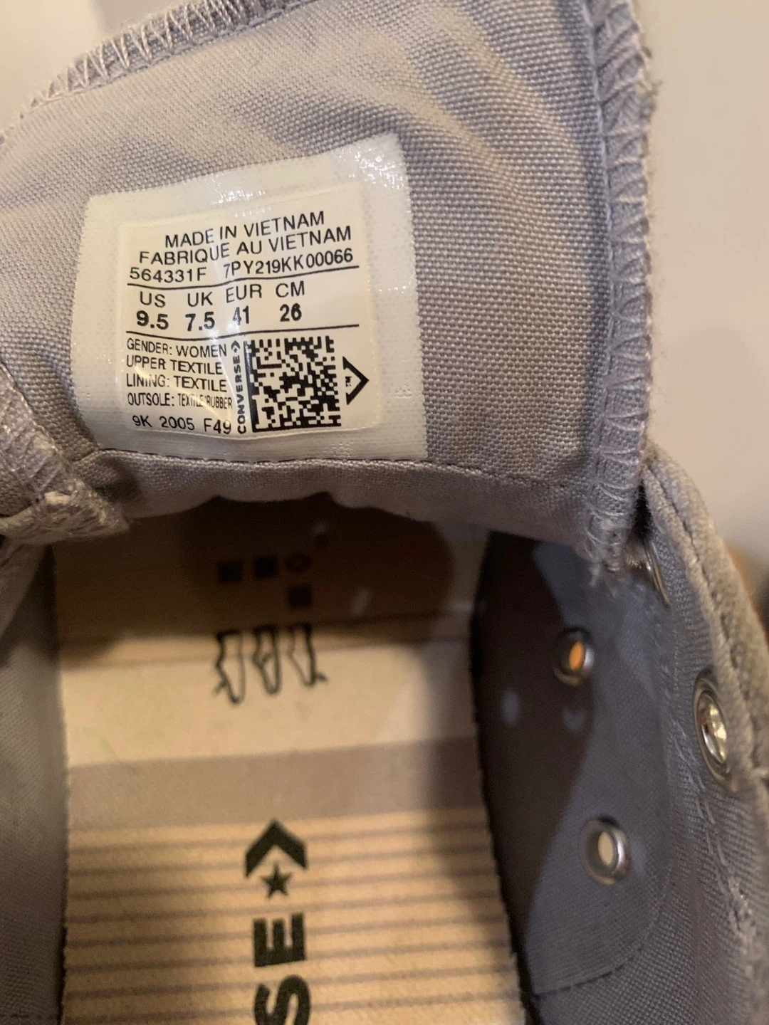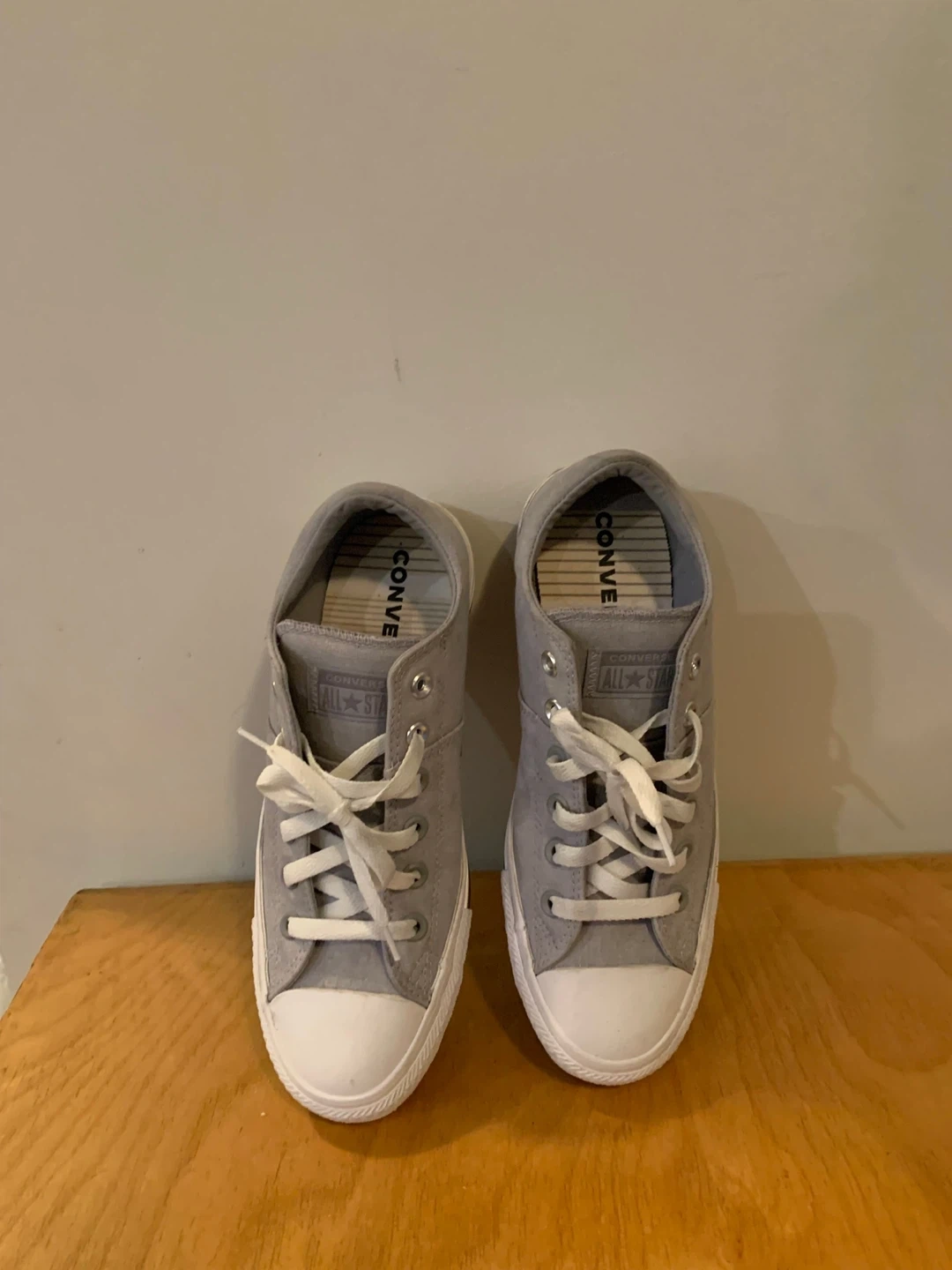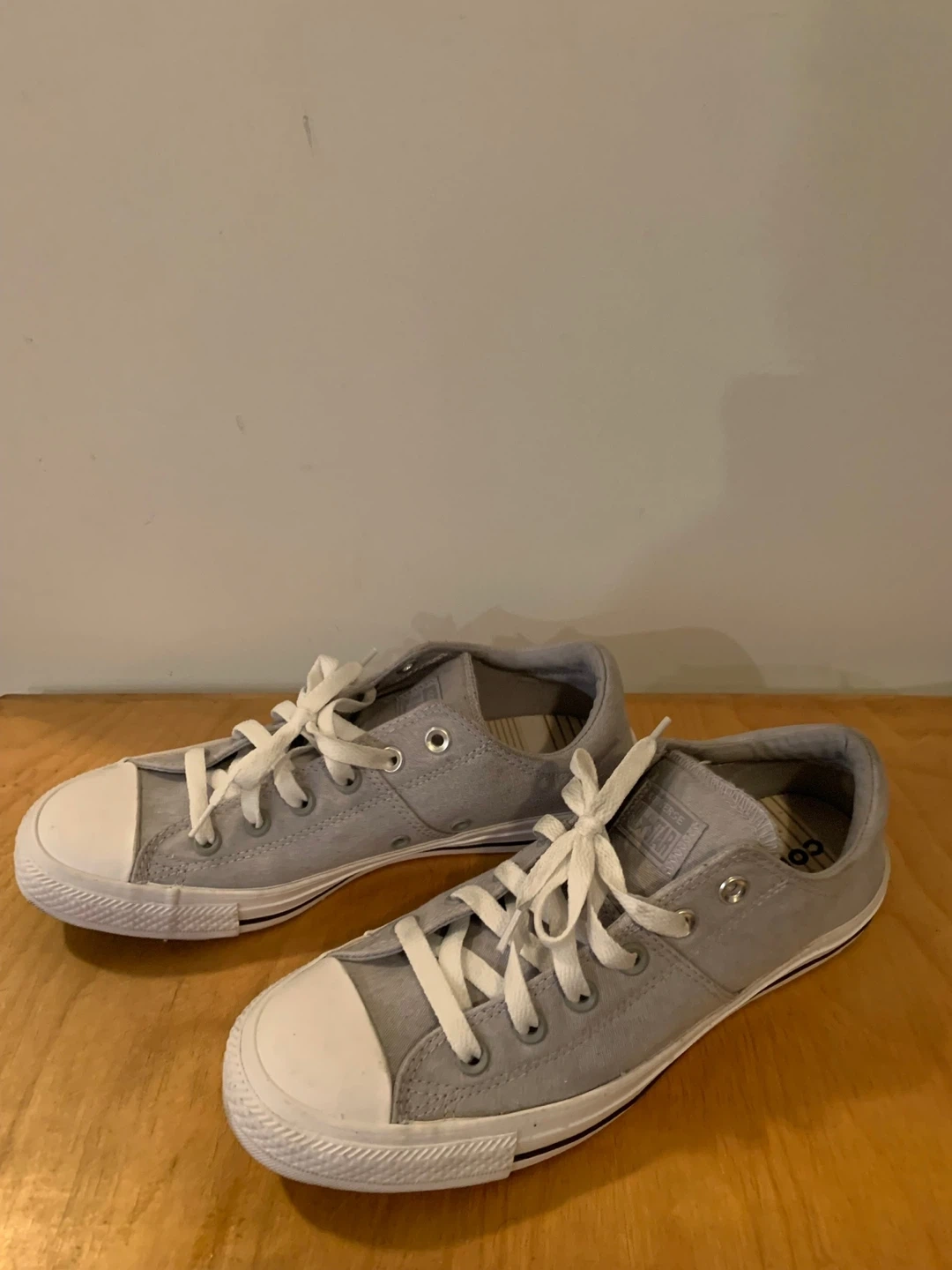Selling a pair of Converse All Star sneakers in women's size US 9.5. They are a stylish light grey colour and in great shape. Perfect for everyday wear.