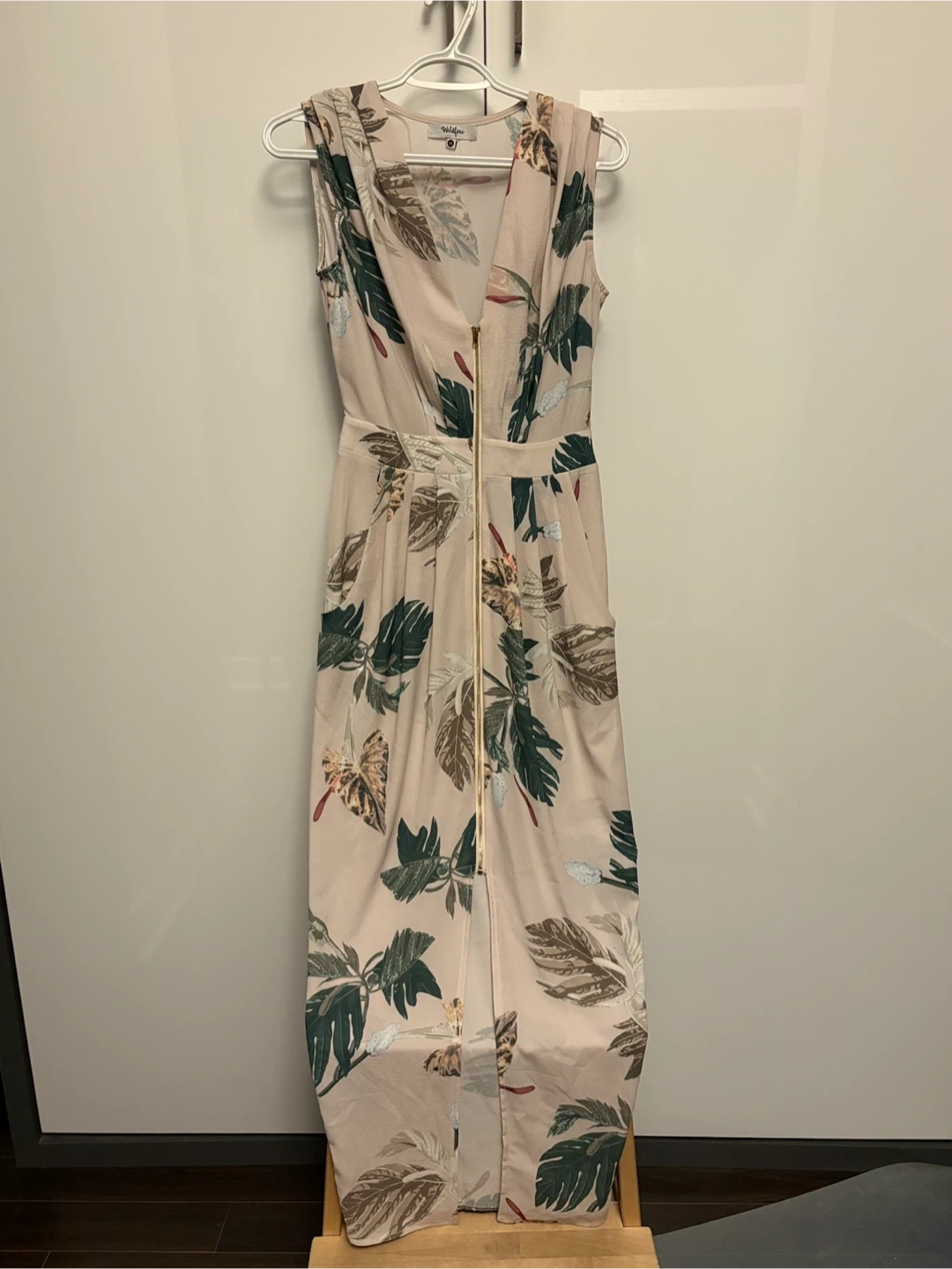Selling a Wildfire dress in size xsmall. It features a lovely leaf pattern and a zipper down the front. It's in great condition and ready for a new home!