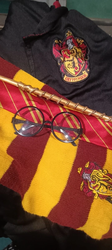 Selling a Harry Potter Gryffindor costume set! Includes a robe with the Gryffindor crest, a Gryffindor scarf, a wand, and a pair of glasses. Used only last Halloween