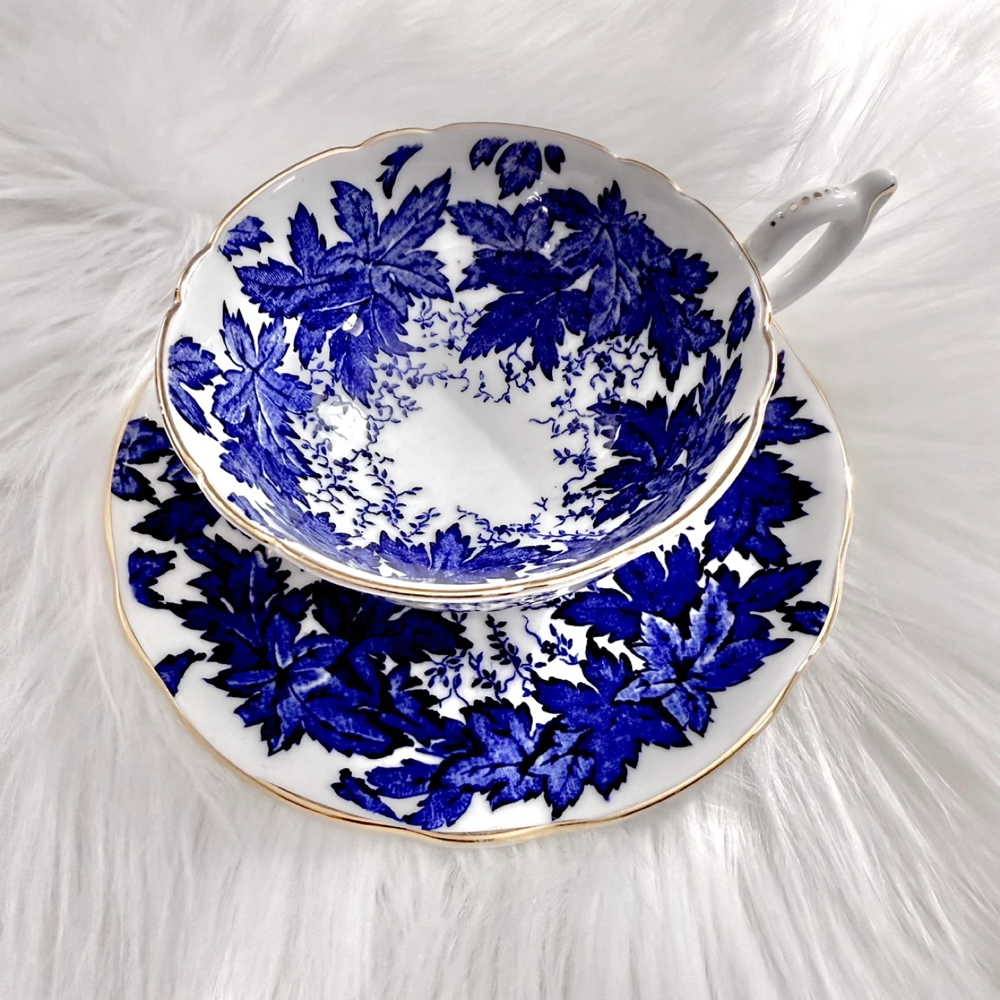 Coalport (made in England) fine bone china cabinet widemouth teacup featuring striking cobalt blue leaves. No chips, cracks, crazing or gold loss — high ping/ring on both pieces Pickup Choices: 1. Avenue Rd & St Clair Ave condo (lobby or driveway) or 2. St Clair/Yonge subway station (outside) Sorry, no deliveries to other meetup spots & priority to fastest same-day pickup. Hold honoured only for confirmed on-the-way travel time for pickup. Feel free to check-in for item’s availability otherwise. Thank you for looking & your consideration :)