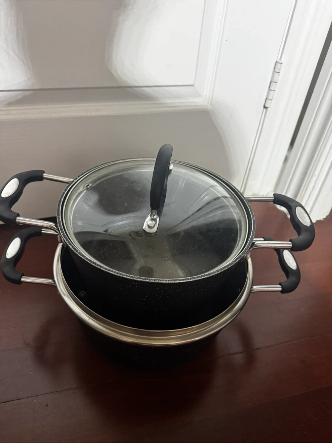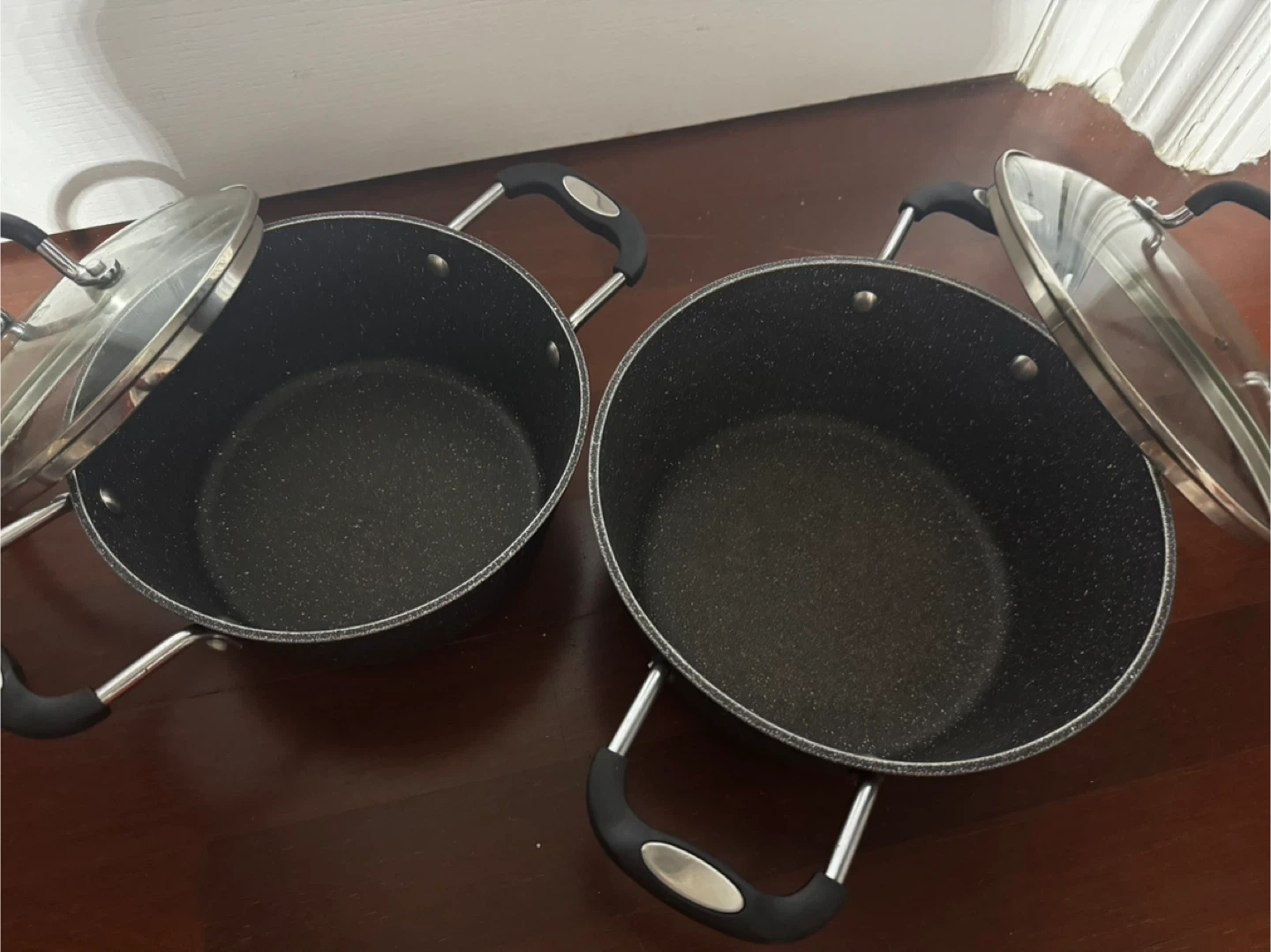 Selling a set of two nonstick pots, each with its own lid. They're in good shape and ready for a new home! Perfect for cooking up your favourite meals. Size 22 and 24 $30 Yonge and finch area
