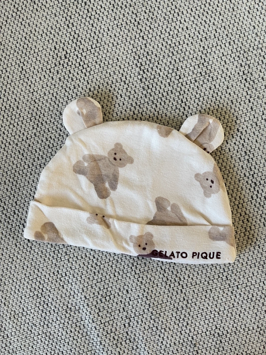 Super cute Gelato Pique baby hat with a sweet bear print! It's in great condition and perfect for keeping your little one cozy. The material is soft and gentle on the skin 14x22cm Comfy