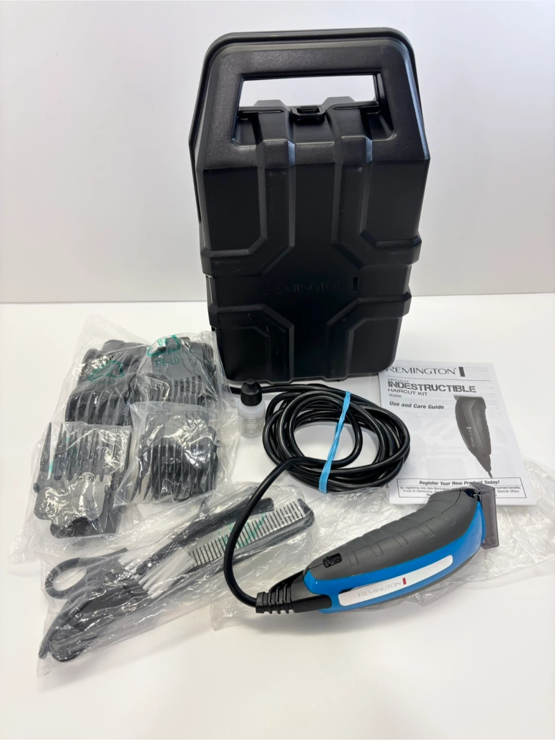 Just like new ! Used once and taken apart and throughly cleaned . Works perfectly ! Was $79.99+tax in store Remington Virtually Indestructible Haircut Kit, model HC5850. Electric shaver . It comes with all the accessories you see in the pictures, including various guide combs, scissors, oil, and a storage case.