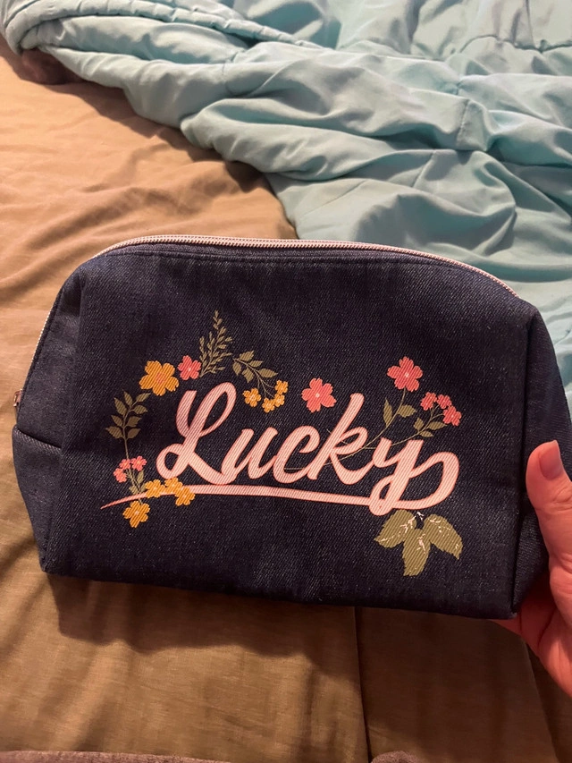 Selling a cute Lucky Brand denim makeup bag! It's in great condition and features a lovely floral design. Perfect for keeping your cosmetics organized while adding a touch of style to your everyday routine. For Sale By: Owner