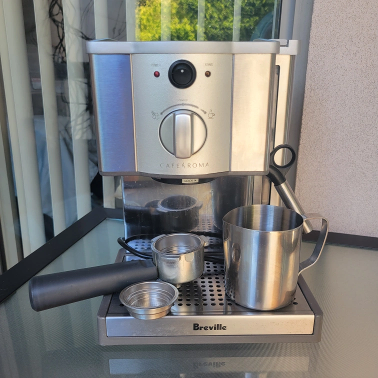 Selling a Breville Cafe Roma espresso machine. It's in great shape and ready to make some delicious coffee! Includes the frothing pitcher and the accessories you see in the photos.