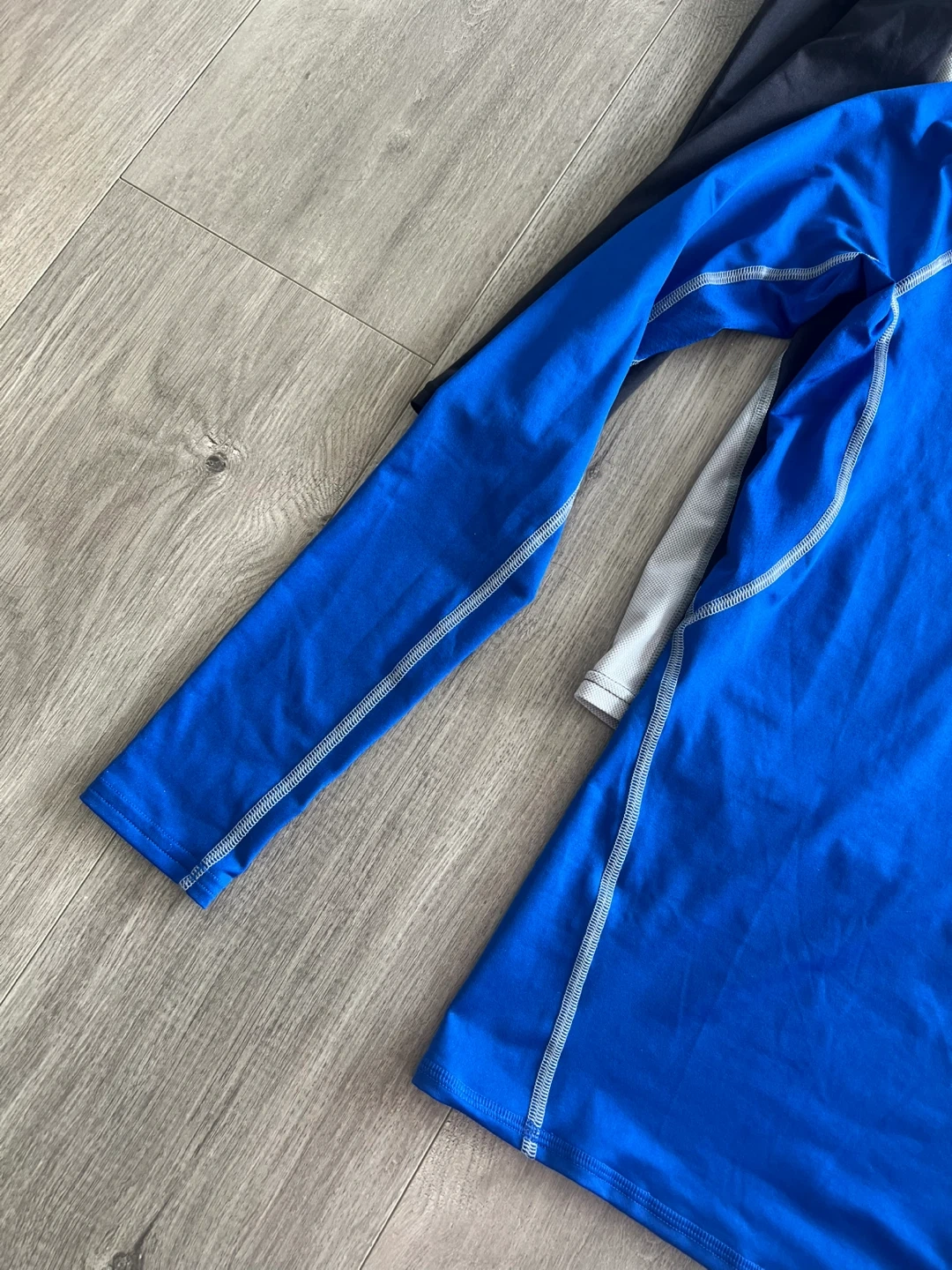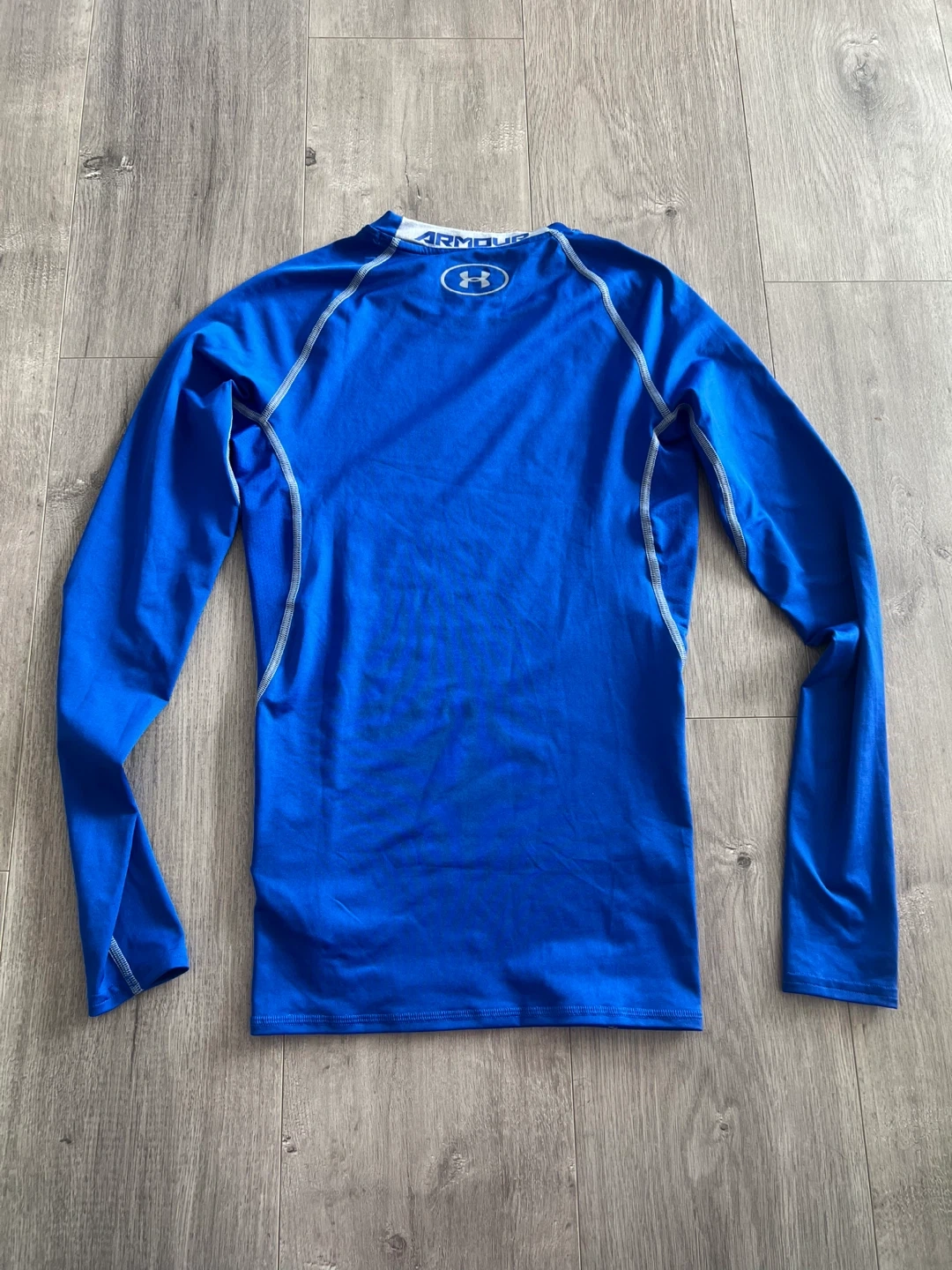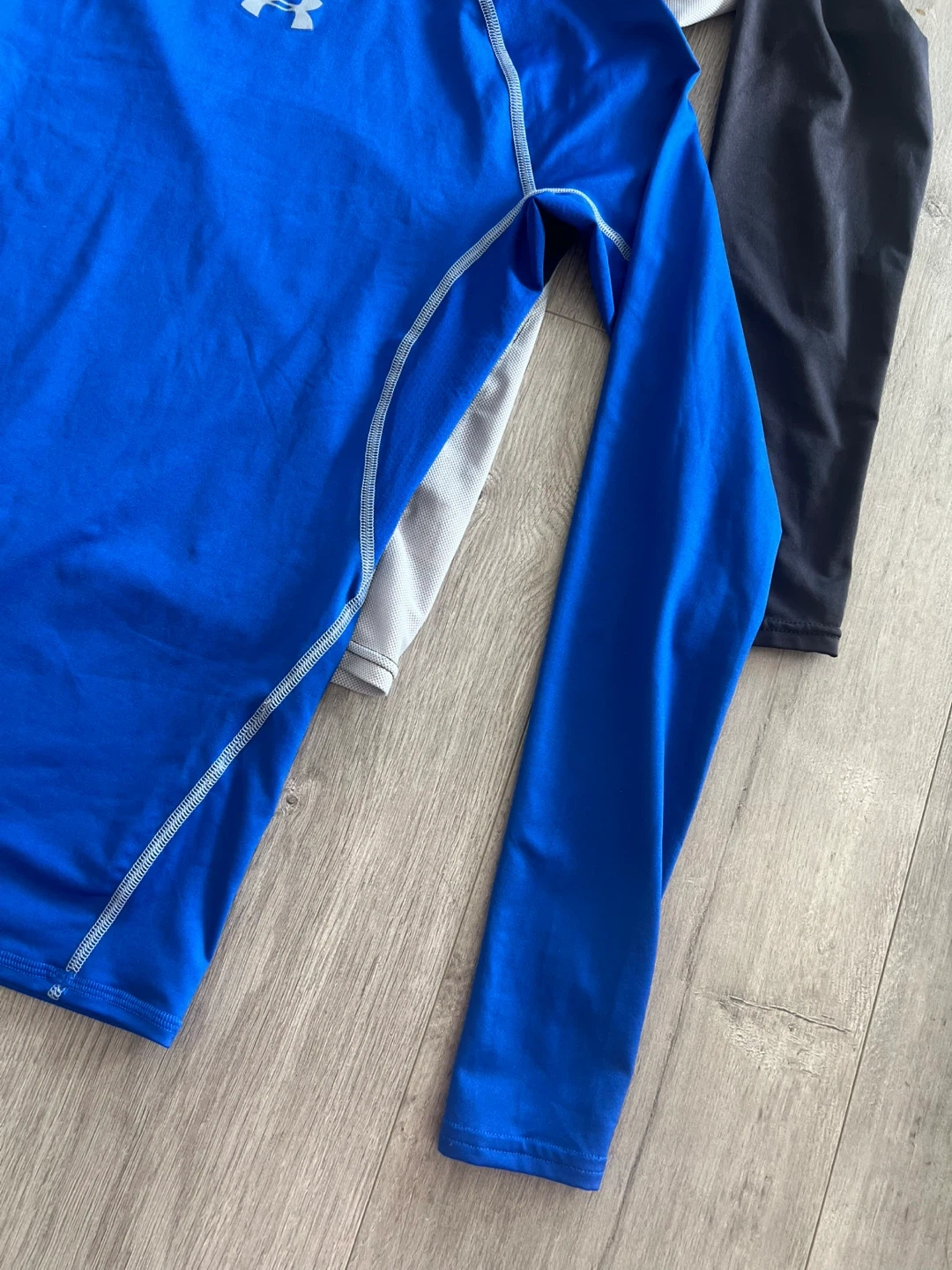 Under Armour compression heat gear shirt size small for sale! One is blue and the other is black and grey firststar size M.