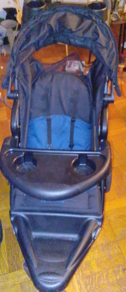 Looking to sell this black Baby Trend stroller! It's in great shape and ready for a new family. It features a convenient tray with cup holders and a storage basket underneath for all your essentials. Perfect for walks around the neighbourhood or trips to the park!