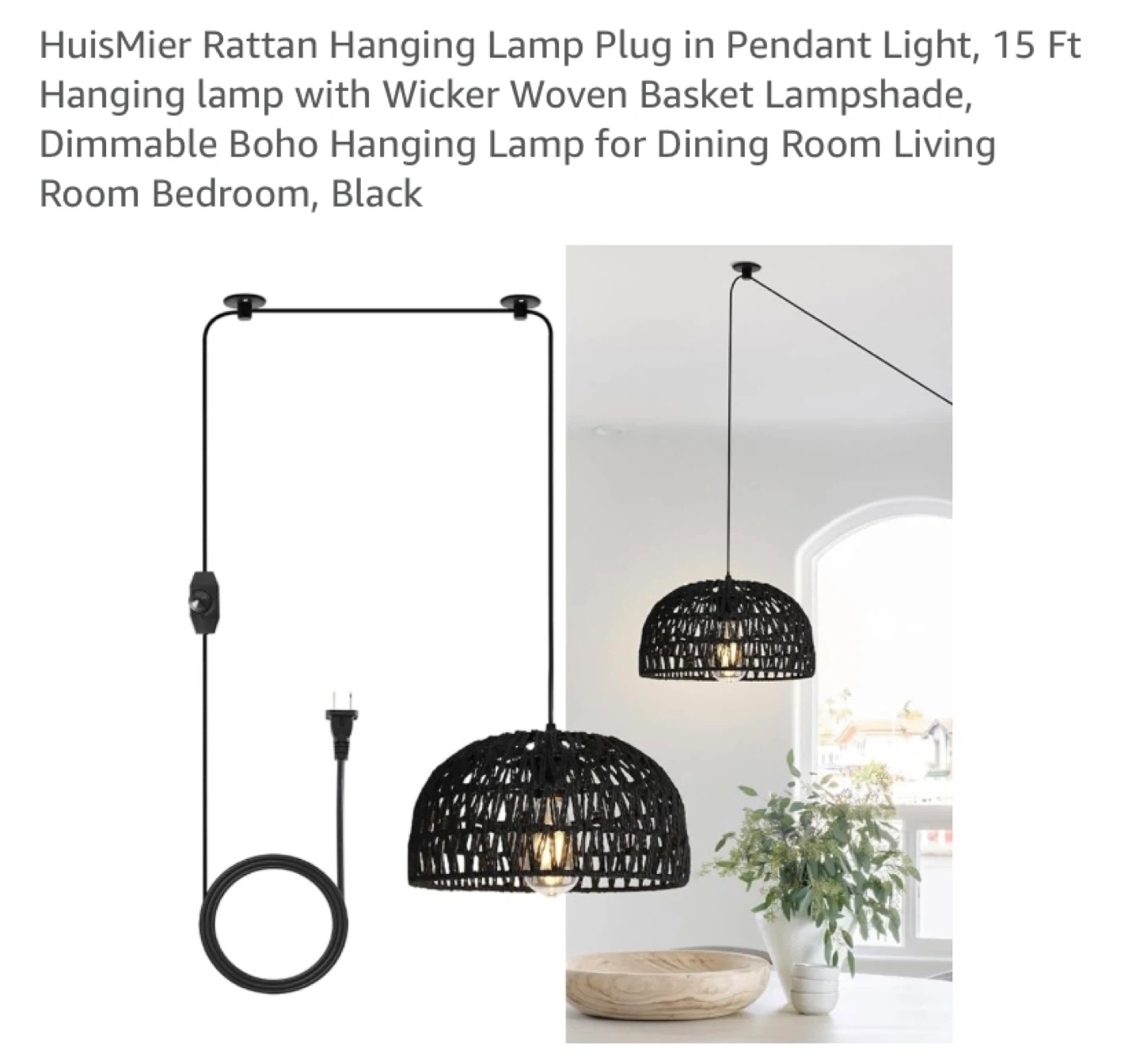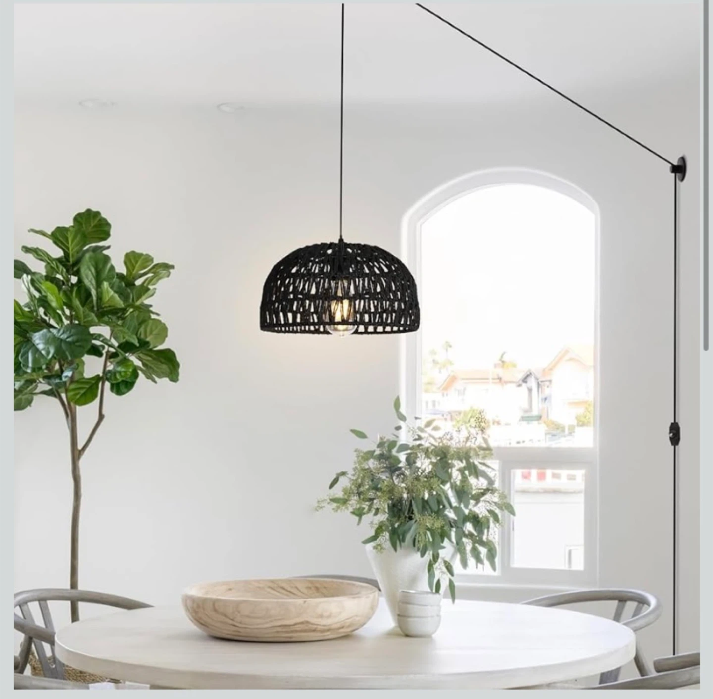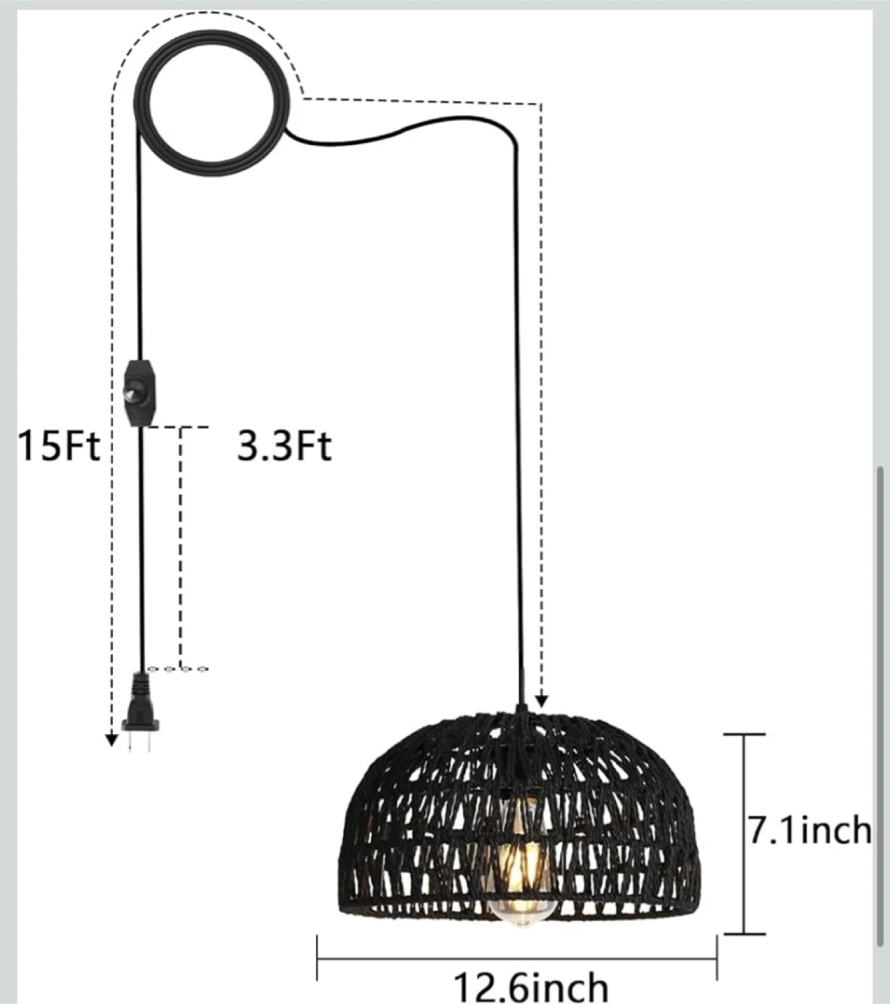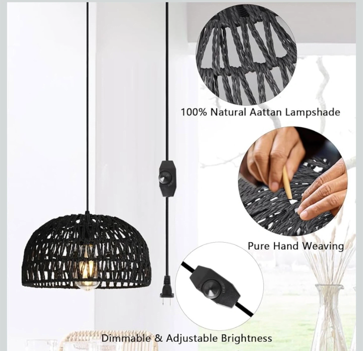 New Rattan Plug In Hanging Pendant Light Black 15 ft of cord $45 Pickup in Whitby