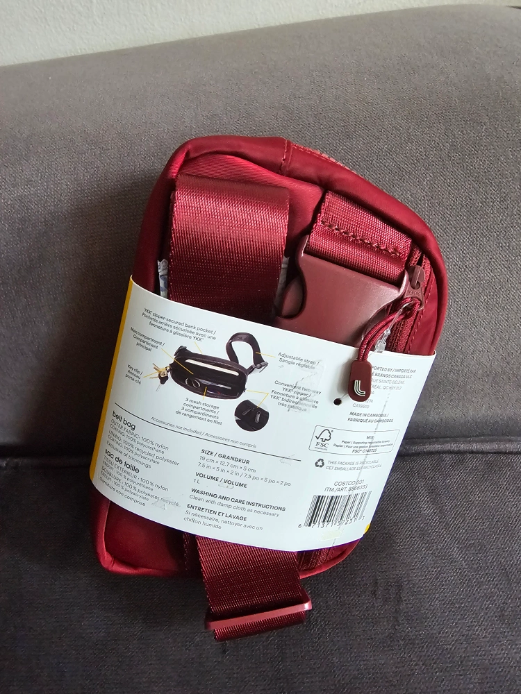 BNWT Adjustable strap (Minimum 50.8 cm/ 20 in. – Maximum 101.6 cm/ 40 in.) 2 compartments YKK® zipper-secured back pocket Main compartment with two-way YKK® 3 mesh storage compartments Key clip Made in Cambodia Outer fabric: 100% nylon Coating: 100% polyurethane Lining: 100% recycled polyester Coating: 100% polyacrylate Dimensions: 19 x 12.7 x 5 cm (7.5" x 5" x 2") 1 L capacity Clean with a damp cloth as necessary FINAL SALE Accepting cash only please